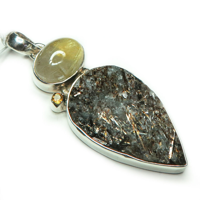 Астрофиллит. Рутиловый кварц. Кулон с астрофиллитом и рутиловым кварцем (волосатиком)