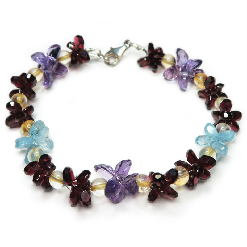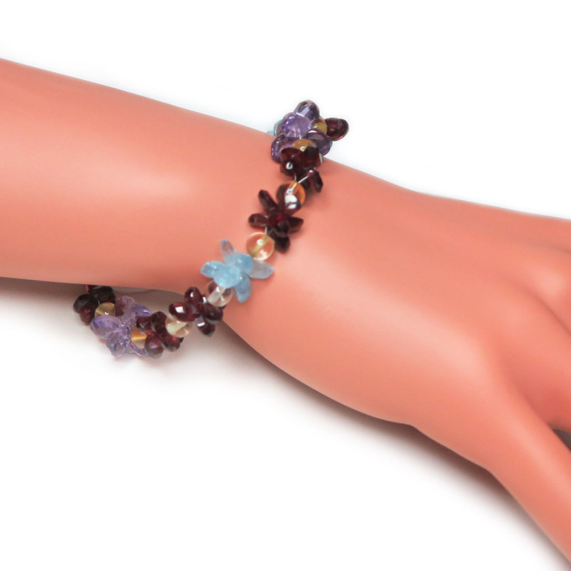 Браслет с гранатом, голубым топазом, аметистом 668-eb