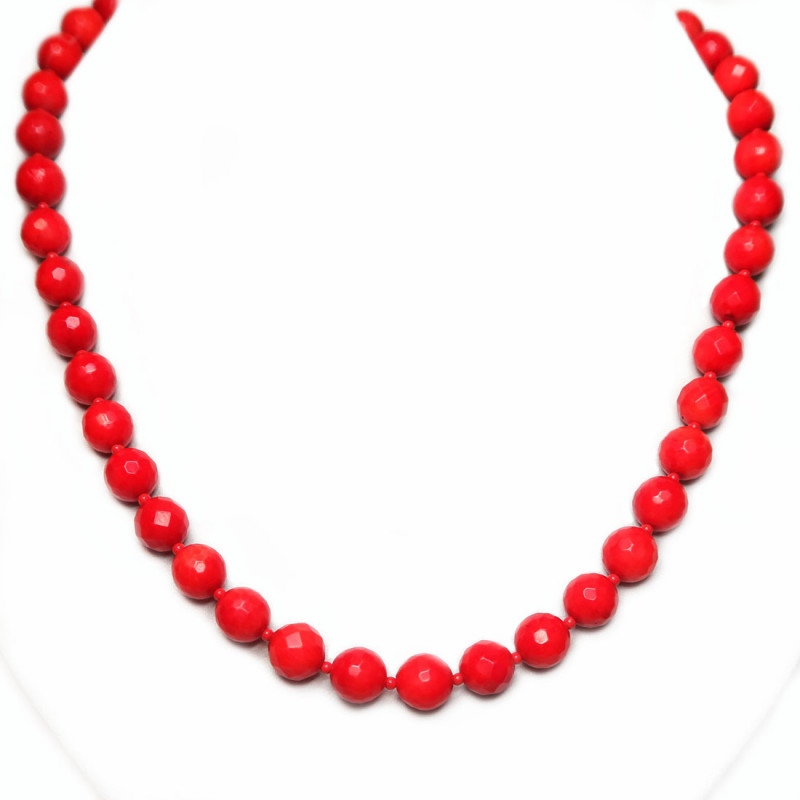 Бусы из коралла красивого красно-оранжевого цвета, камни с огранкой, размер камня 0.9 см., длина бус 49.5-51 см., замочек карабин, металл ювелирный сплав.