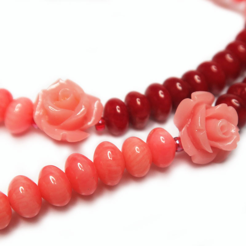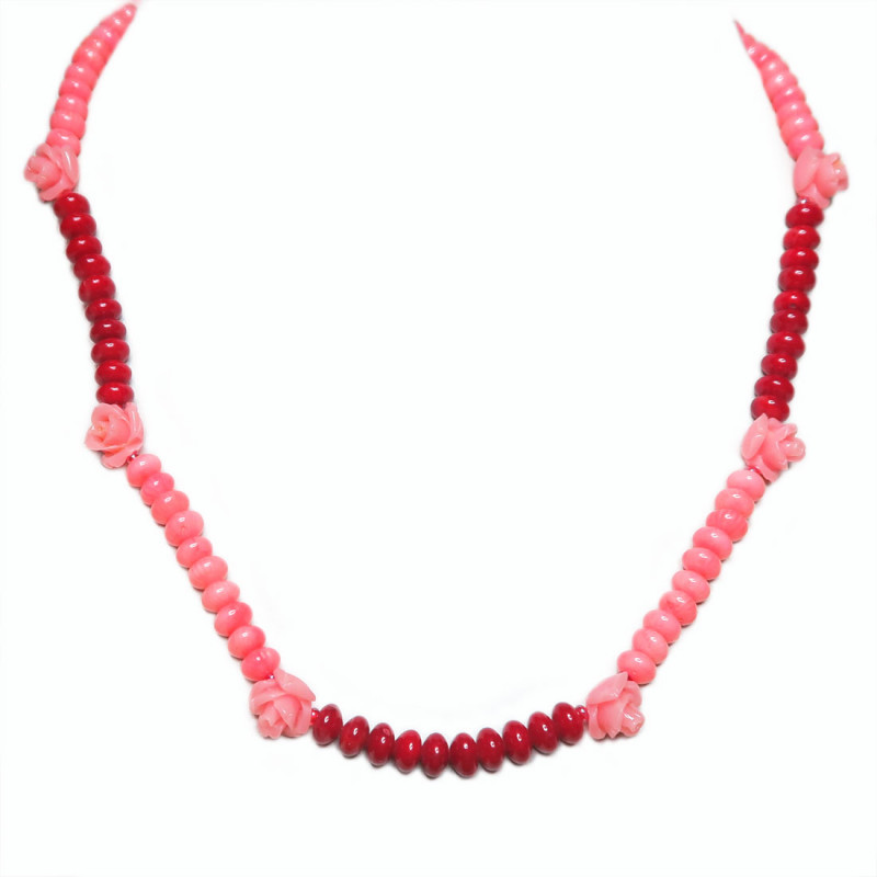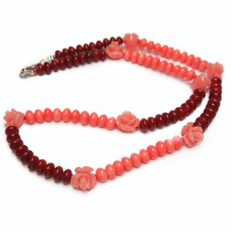 Бусы из розовых и красных кораллов, без огранки, размер камня 0.4*0.6 см., длина бус 46 см., коралл натуральный, вставки - розочки из искусственного коралла.