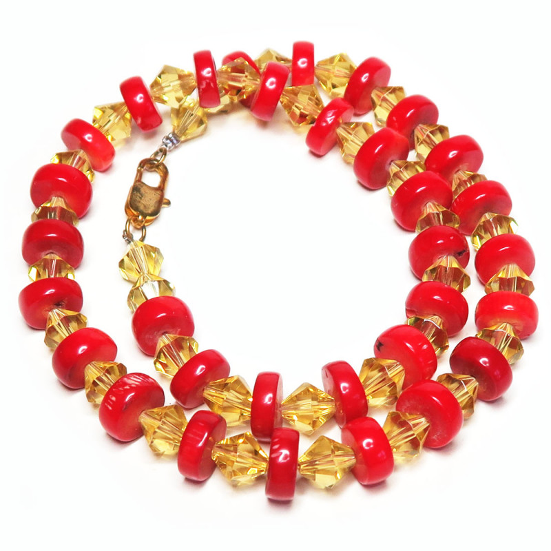 Бусы из красного коралла, форма коралла таблетка, размер бусины 0.4*1 см., длина бус 43.5 см., замочек карабин золотистого цвета. Кораллы являются продуктом жизнедеятельности живых организмов. Кораллы, как украшение, носили в далекой древности. Коралл прекрасное средство для повышения тонуса и снятия усталости, он улучшает память и настроение, благотворно влияет на слух и зрение, считается, что кораллы способны улучшить кровообращение, стабилизировать работу сердечно-сосудистой системы. Коралловые бусы помогут от головной боли и при заболеваниях горла. Кораллы талисманы путешественников. В интернет магазине украшений Вы можете заказать бусы, серьги и другие изделия с красными кораллами.