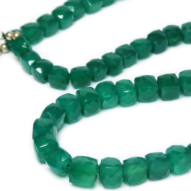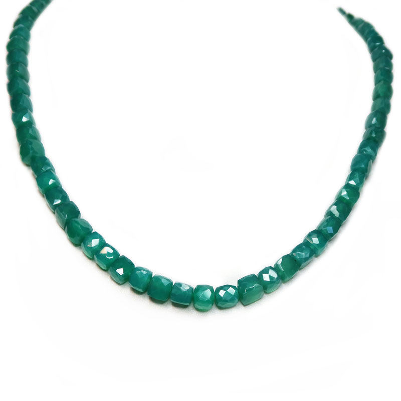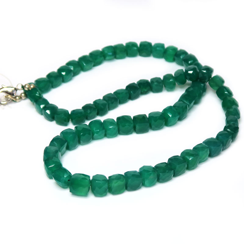 Бусы из зеленого оникса, огранка, форма камня кубик, размер камня 0.7*0.7 см., длина бус 49 см., вес 45 гр., производство Индия.