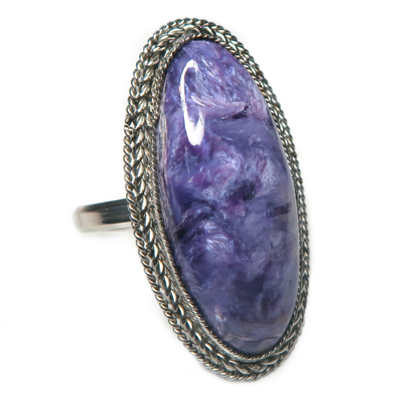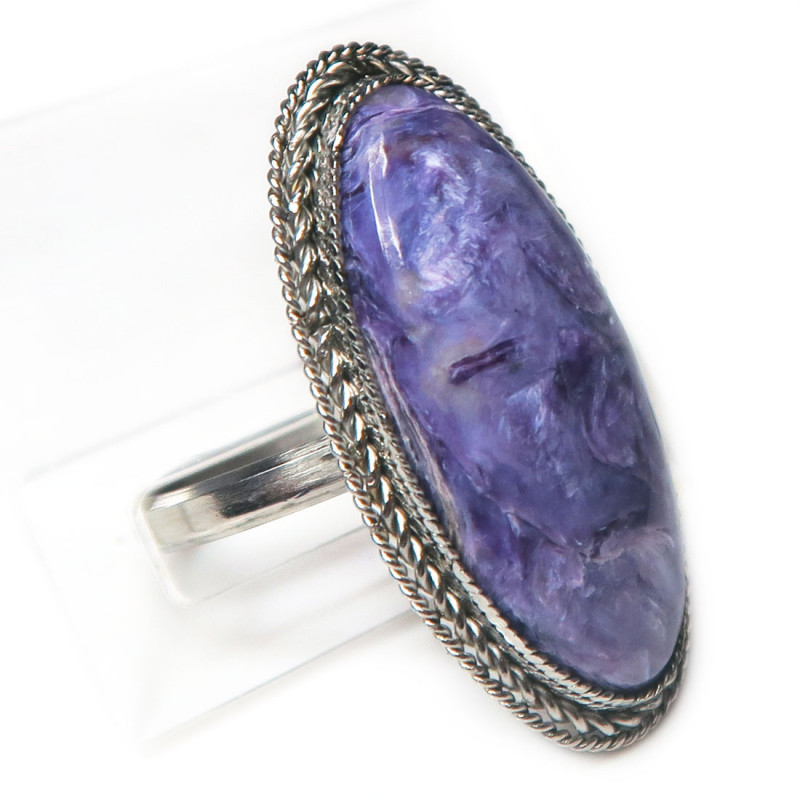 Кольцо с чароитом, камень без огранки отличного качества, размер кольца 18, размер камня в кольце 2.8*1.3 см., металл нейзильбер, размер кольца можно немного увеличить или уменьшить, производство Россия.