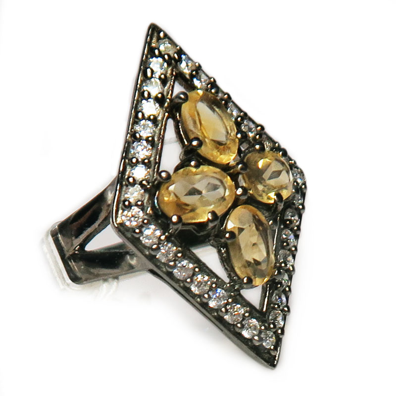 Кольцо с цитрином и мелкими фианитами, огранка, размер кольца 17, размер изделия 1.7*1.9 см., серебро с чернением, вес кольца 5.1 гр., оригинальная работа, производство Индия.