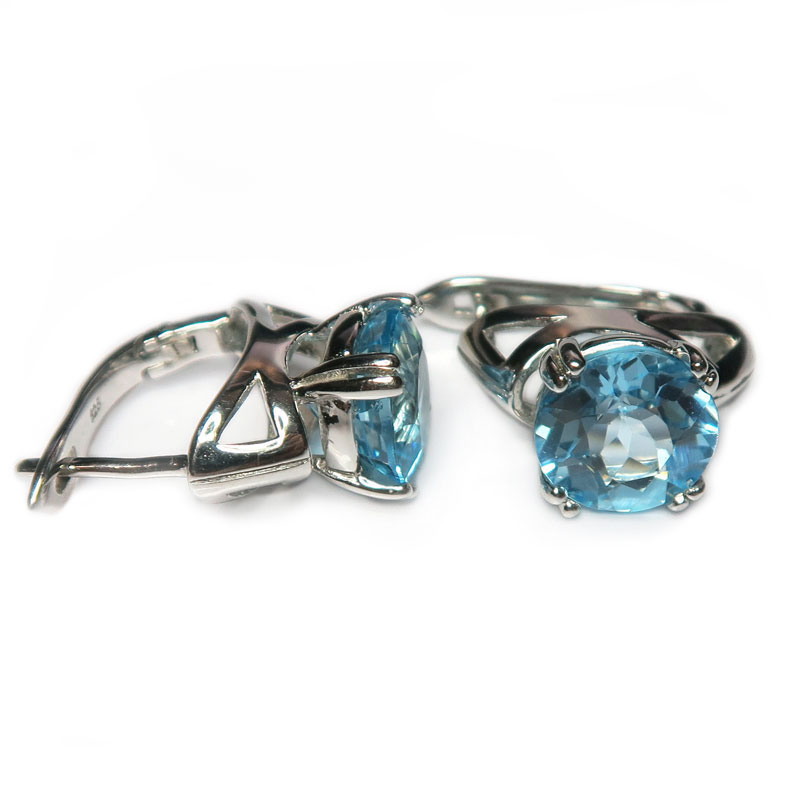 Комплект с голубым топазом отличного качества, огранка, размер кольца 18, размер камня в кольце 1.2 см., размер камня в серьгах 1 см., в серьгах английский замок, вес комплекта 15 гр., металл серебро с покрытием родием, производство Таиланд.