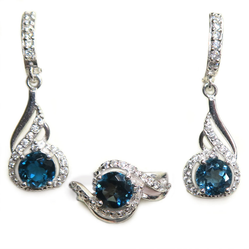 Комплект с лондон-топазом и фианитами, огранка, размер кольца 18, 19, размер камня в кольце 0.8*0.6 см., размер серьги 2.2*1.2 см., без учета замка, вес комплекта 11 гр., серебро с покрытием родием, производство Таиланд.