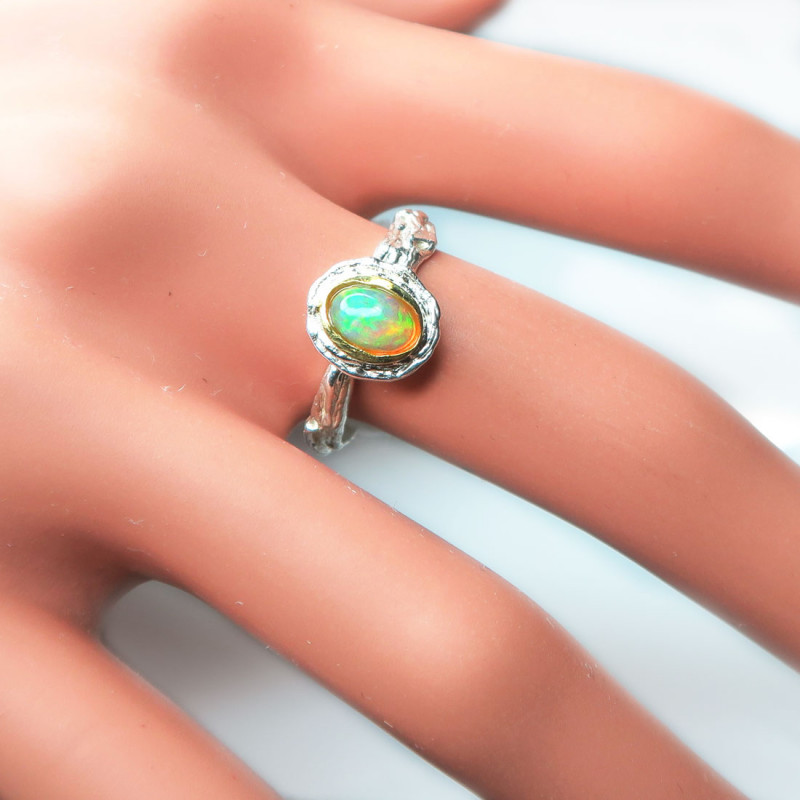 Кольцо с опалом желтого цвета, опал без огранки, кольцо разъемное, подойдет на любой размер пальца. Размер опала 0.7*0.3 см., металл серебро с покрытием родием и позолотой, вес кольца 2.66 гр., авторская работа, производство Таиланд.