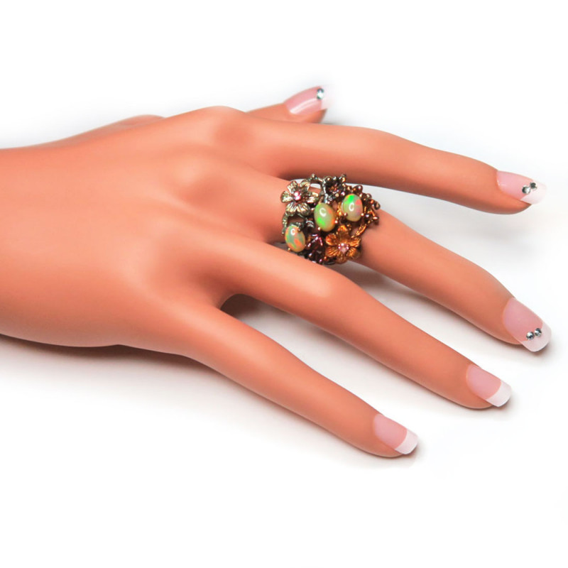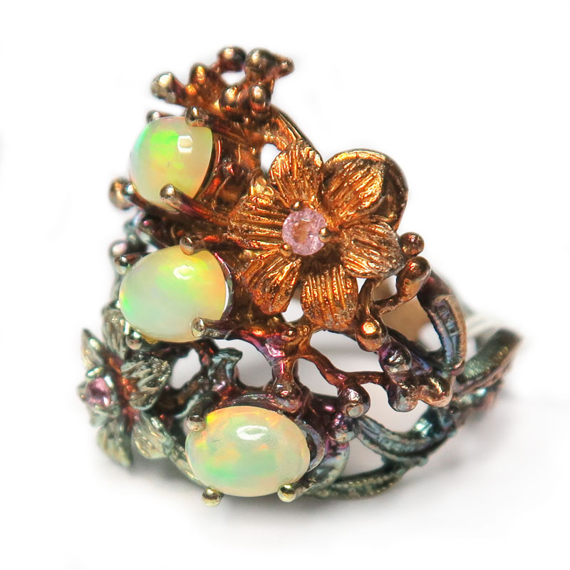 Кольцо с натуральными опалами высокого качества, размер кольца 18.5, размер изделия 2.5*2.5 см., хорошее качество камня, серебро, вес кольца 10.3 гр., авторская работа, производство Тайланд.