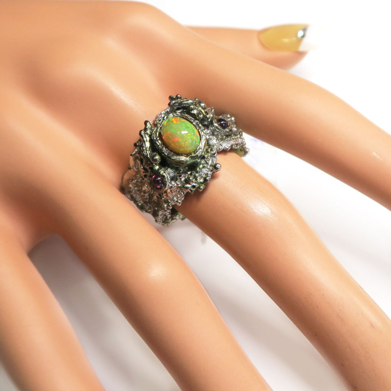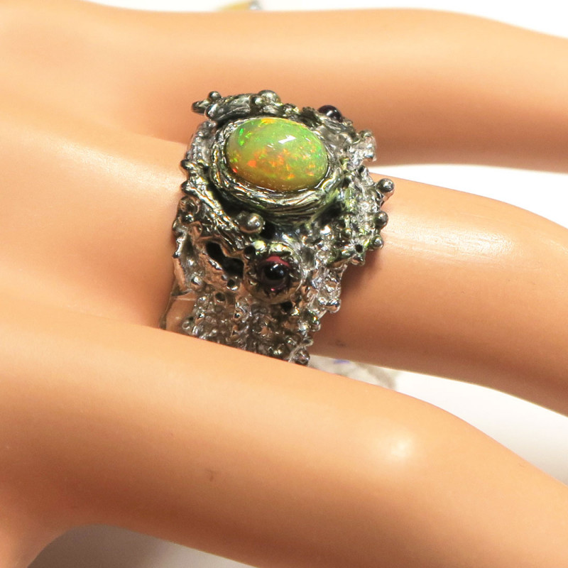 Кольцо с натуральным опалом высокого качества, размер кольца 19, размер камня 0.8*0.6 см., хорошее качество камня, серебро, вес кольца 12.65 гр., авторская работа, производство Тайланд.