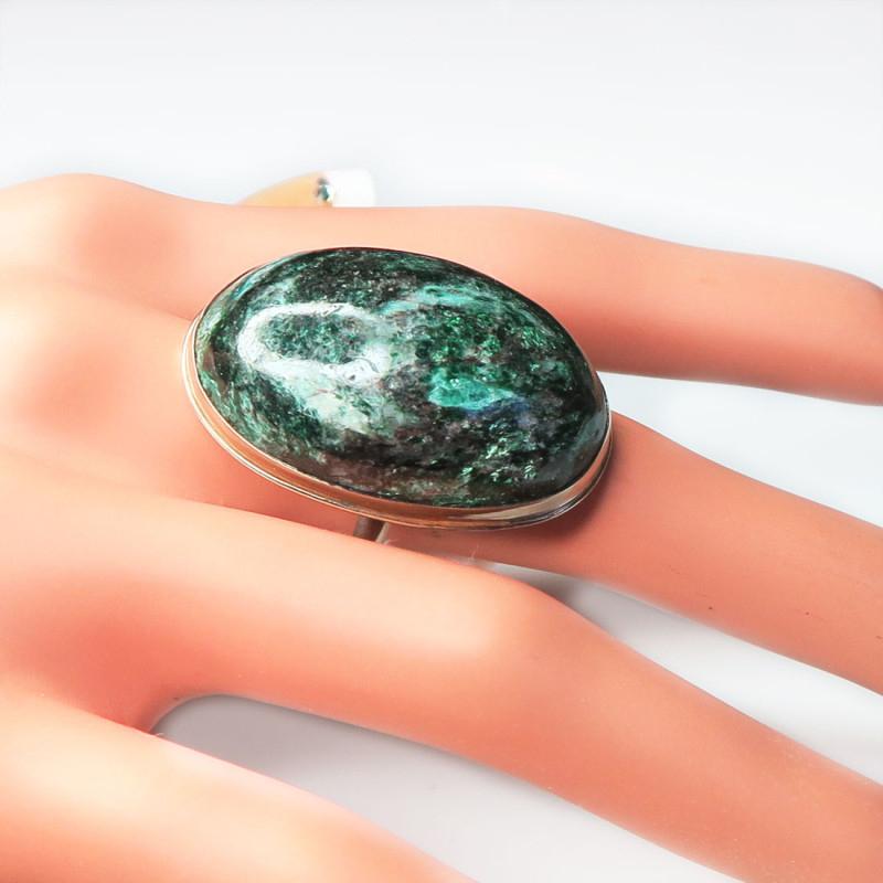 Кольцо с фукситом, камень выпуклый, размер кольца 18.25, размер камня в кольце 3.4*2 см., Камень выпуклый, металл нейзильбер, размер кольца можно немного увеличить или уменьшить, производство Россия.