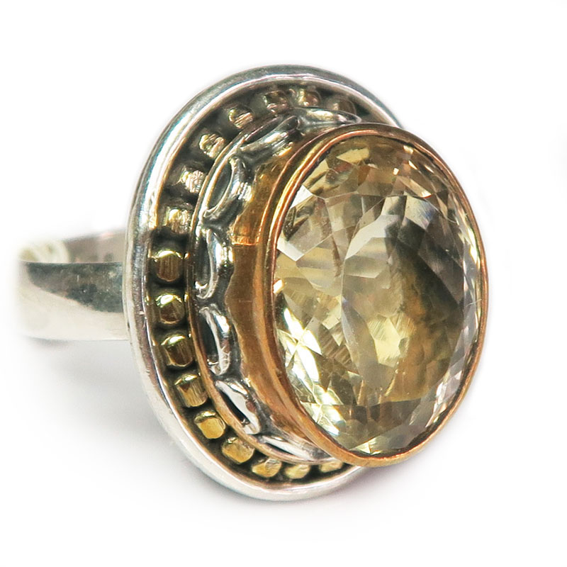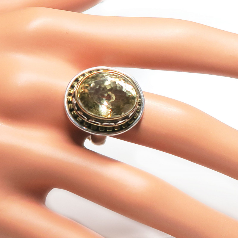 Кольцо с цитрином, камень с огранкой, размер кольца 17, размер камня в кольце 1.7*1.3 см., размер изделия 2*2.2 см., вес изделия 10 гр., серебро с позолотой, производство Индия.