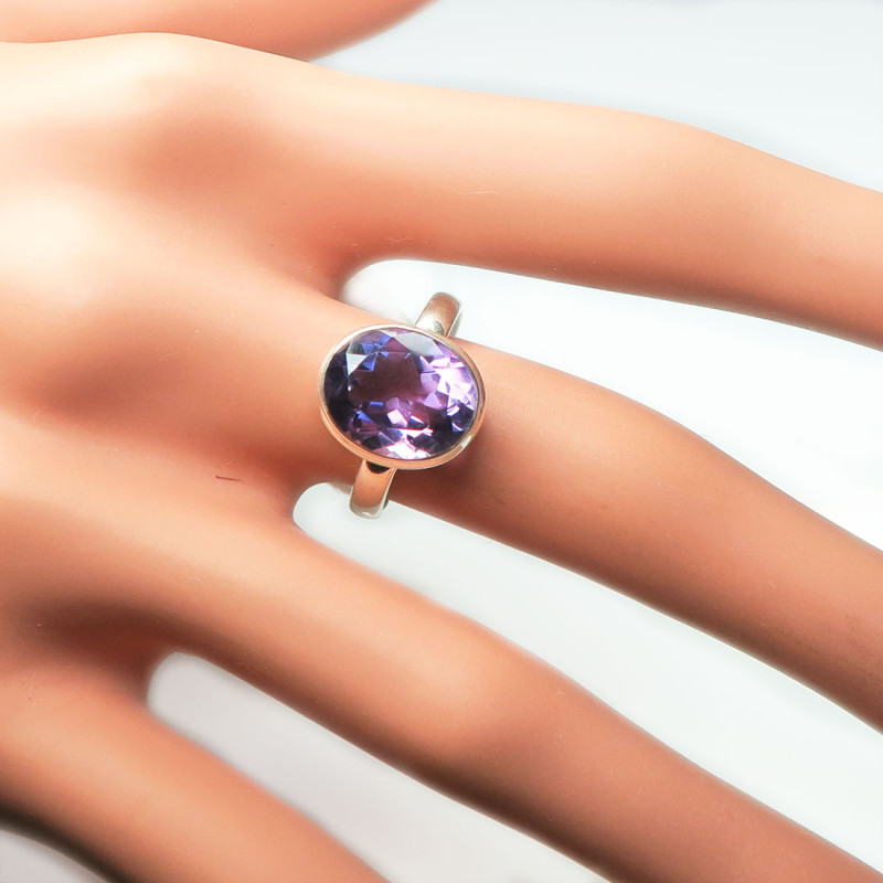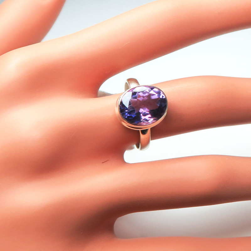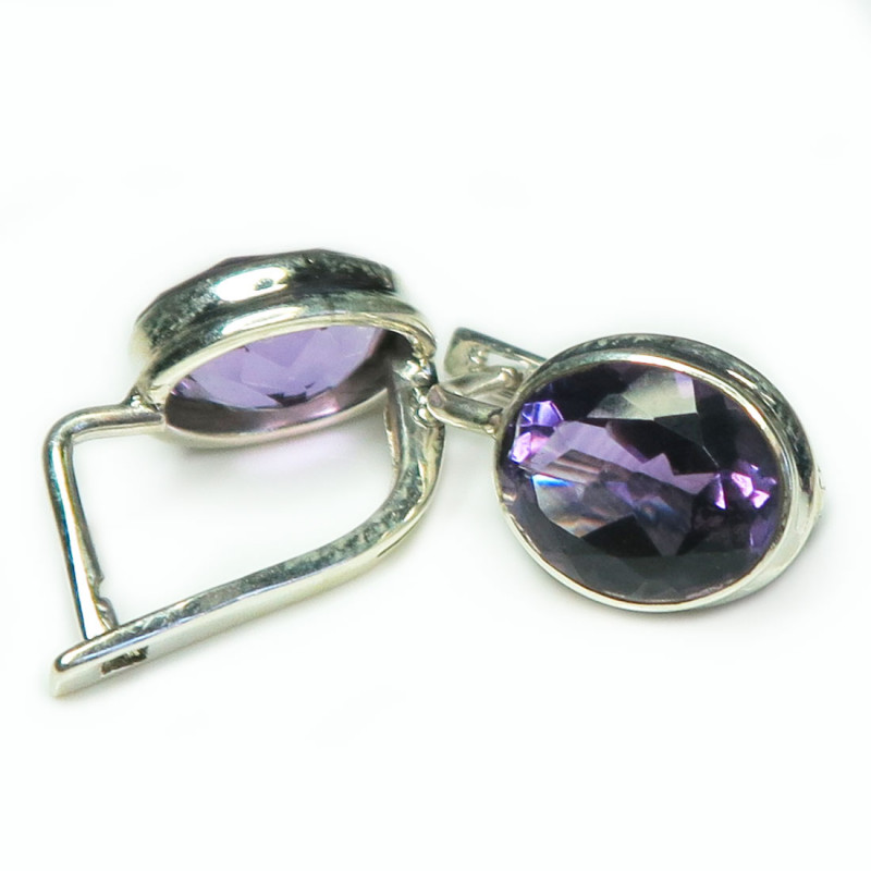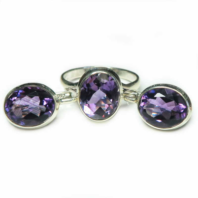 Комплект с аметистом, камни с огранкой хорошего качества, размер кольца 18.5, 19, размер камня 1.1*0.9 см., в серьгах английский замок, металл серебро, вес комплекта 7.26-7.4 гр., производство Индия.