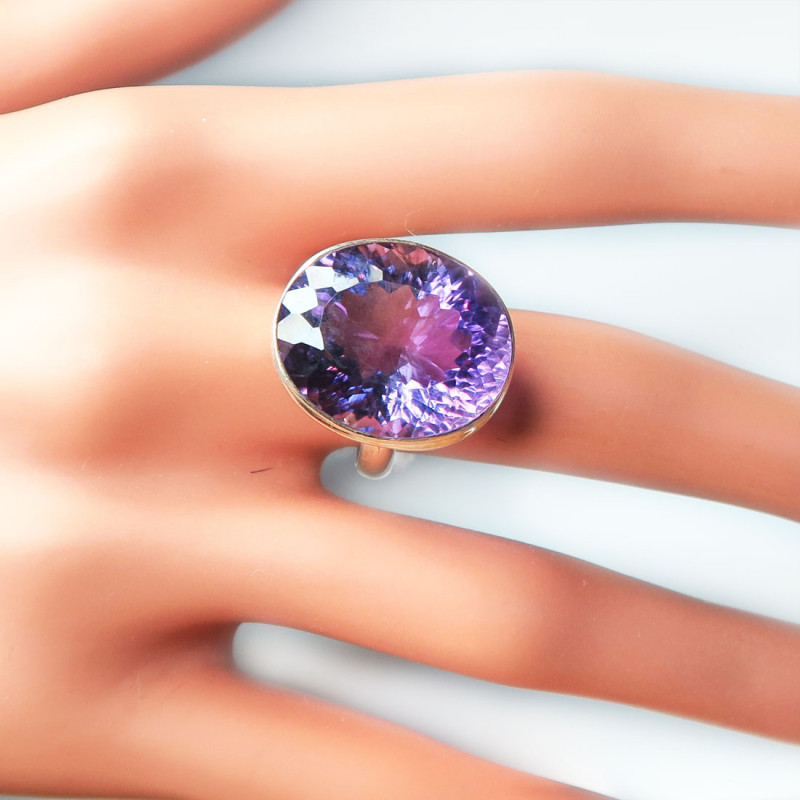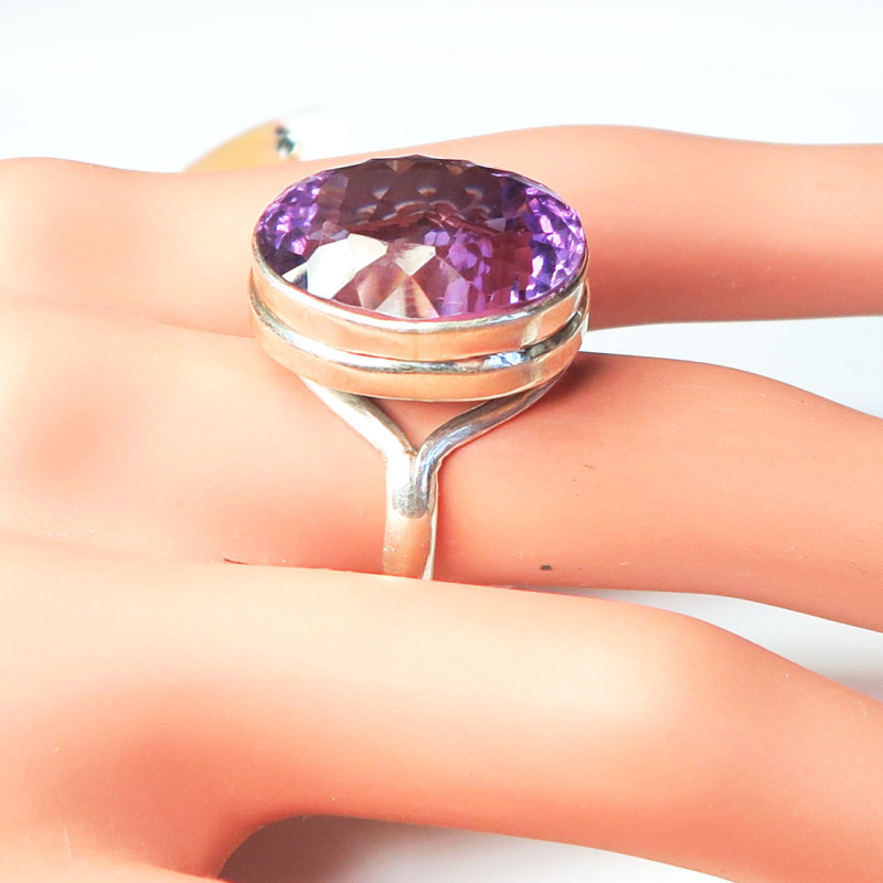 Комплект с аметистом, камни с лазерной огранкой хорошего качества, размер кольца 18.5, размер камня 1.5*2 см., в серьгах английский замок, металл серебро, вес комплекта 23.75 гр., производство Индия