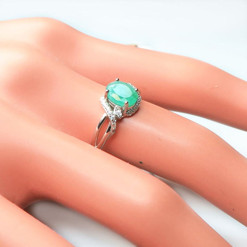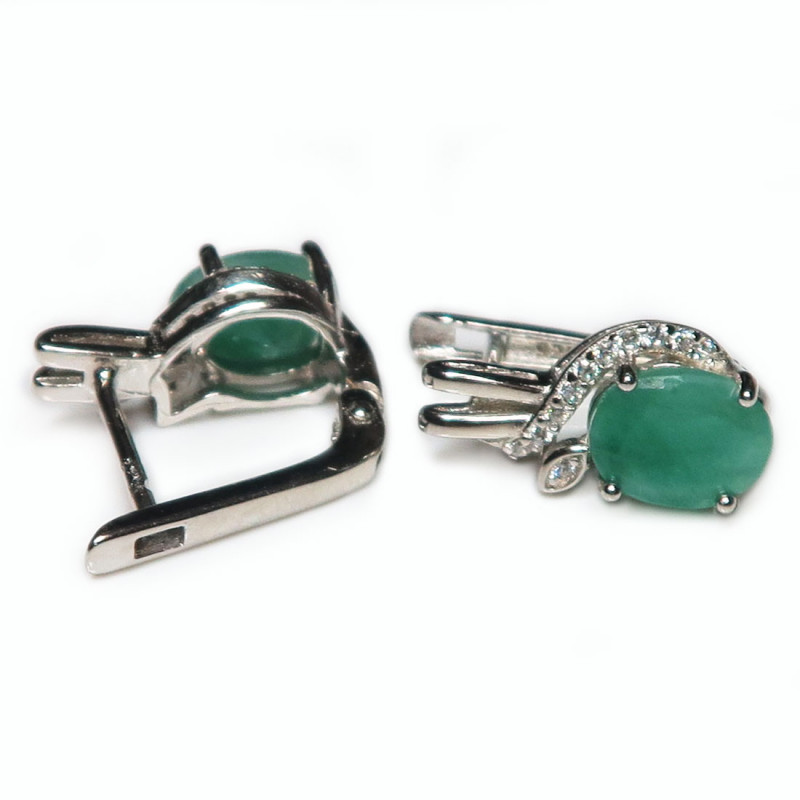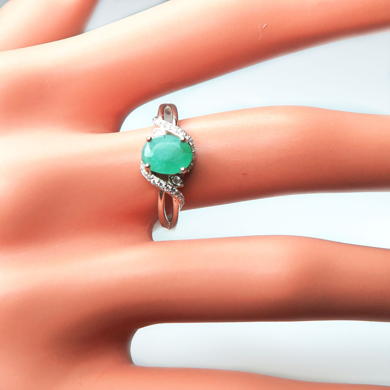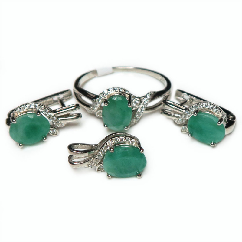 Комплект с бериллом, серьги, кольцо, кулон и фианитами. Размер кольца 18, 19, размер центральных камней в комплекте 6*8 мм. В серьгах английский замок, металл серебро с родиевым покрытием, вес комплекта 6.12-6.27 гр., производство Таиланд.