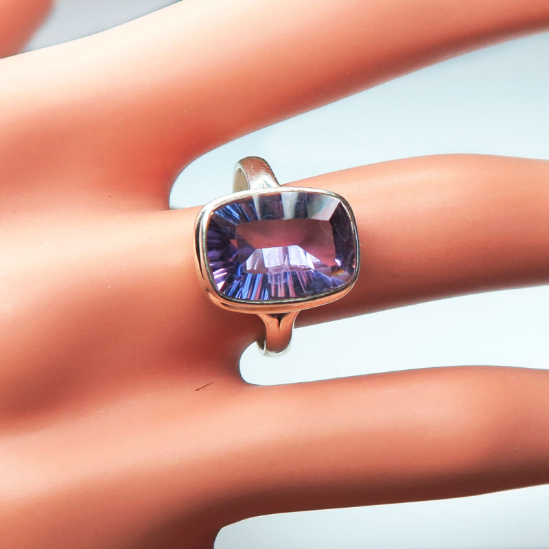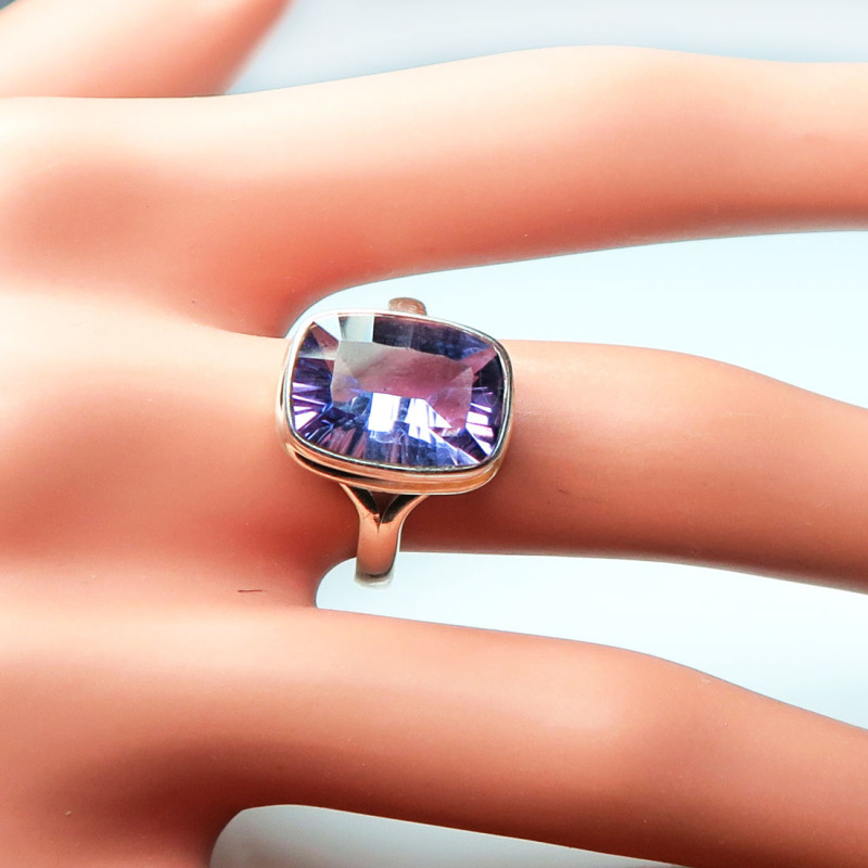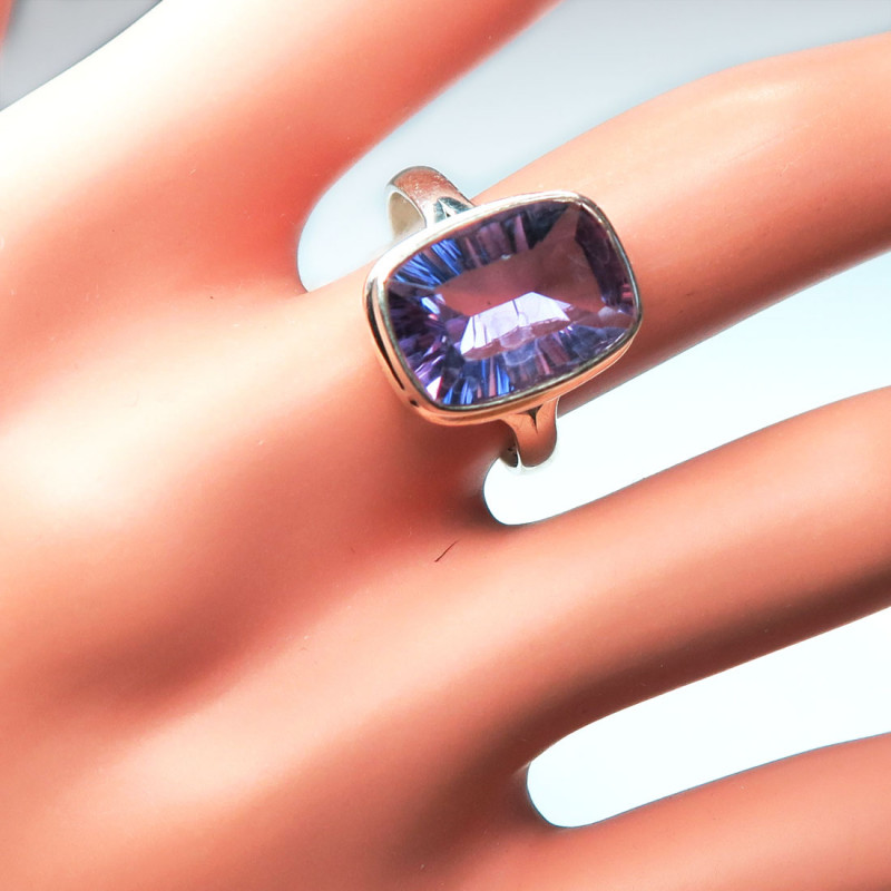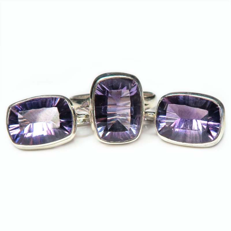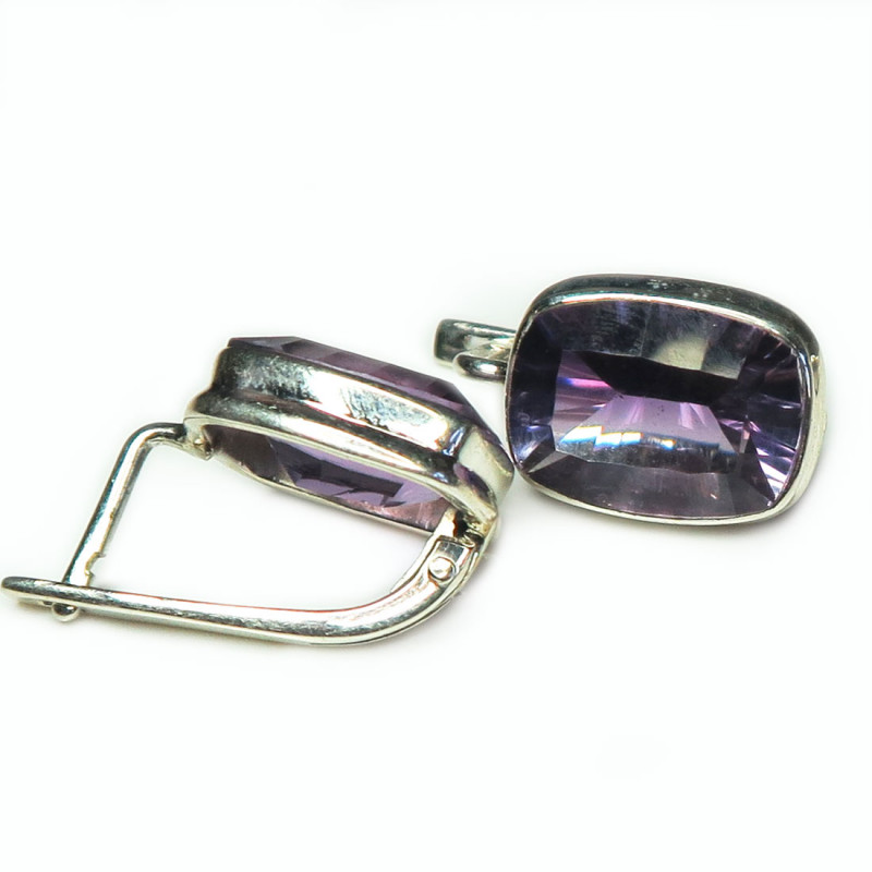 Комплект с аметистом, камни с лазерной огранкой хорошего качества, размер кольца 18.5, размер камня 1.5*1 см., в серьгах английский замок, металл серебро, вес комплекта 9.51 гр., производство Индия.