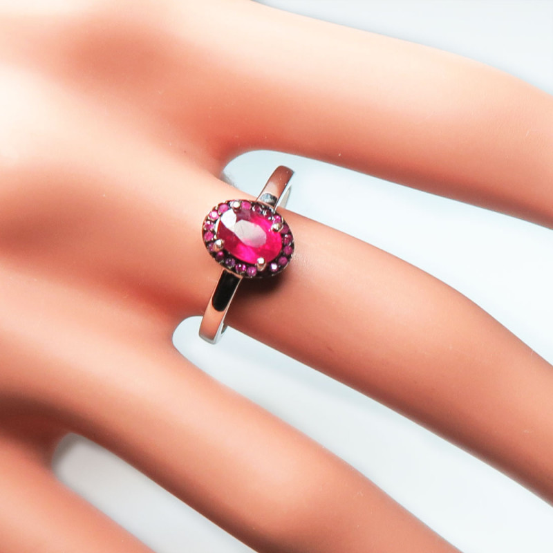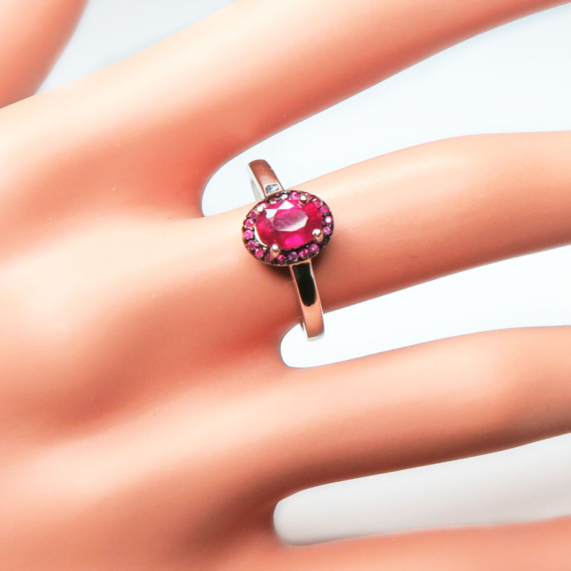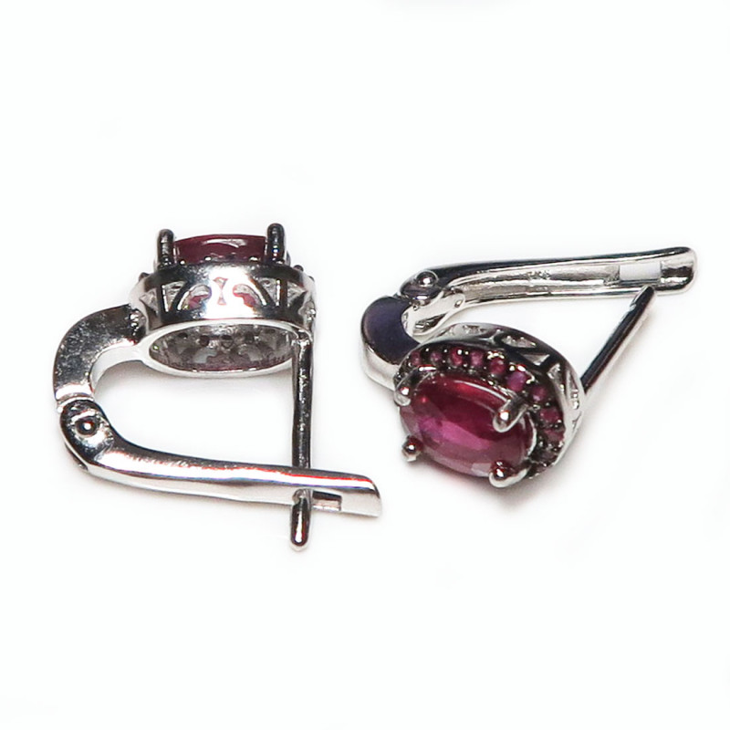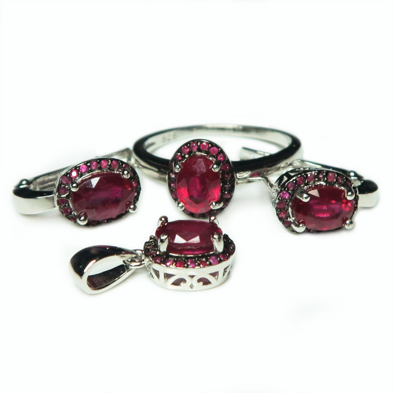 Комплект с рубином, серьги, кольцо, кулон. Размер кольца 18, размер центрального камня в комплекте 5*7 мм. В серьгах английский замок, металл серебро с родиевым покрытием, вес комплекта 7.36 гр., Камни с хорошей прозрачностью, производство Таиланд.
