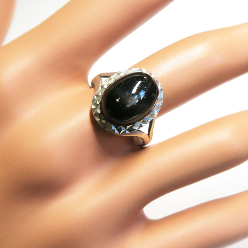 Комплект с диопсидом "Черная звезда Индии", камни кабошоны, размер кольца 19.25, размер камня 1*1.5 см., металл серебро, вес комплекта 11.15-12 гр., производство Индия.