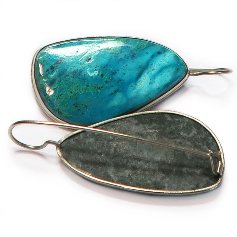 Комплект с натуральной хризоколлой красивого цвета, размер кольца 17.5, размер кольца можно немного отрегулировать в любую сторону, размер камня в кольце 1.5*3 см., размер камня в серьгах 1.8*3.5 см., металл нейзильбер, производство Россия.
