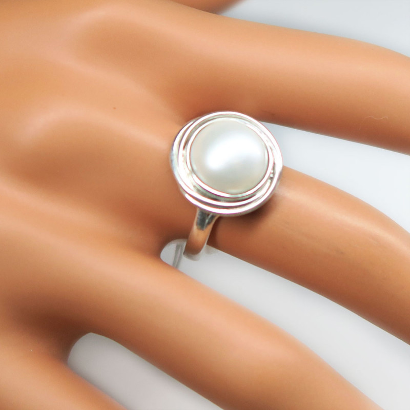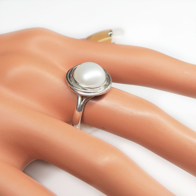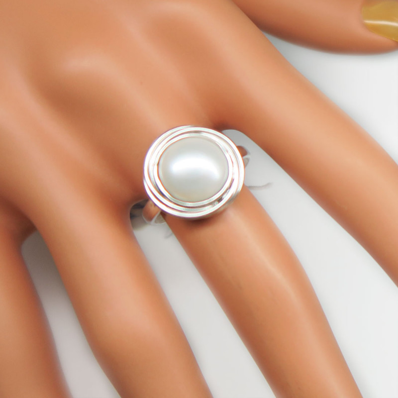Комплект с крупным натуральным жемчугом, размер кольца 18.5, размер жемчуга 1.1 см., размер изделия 1.5 см., в серьгах английский замок, вес комплекта 12.6 гр., производство Индия.