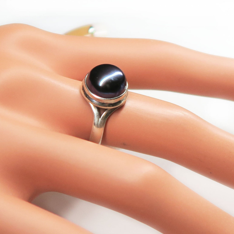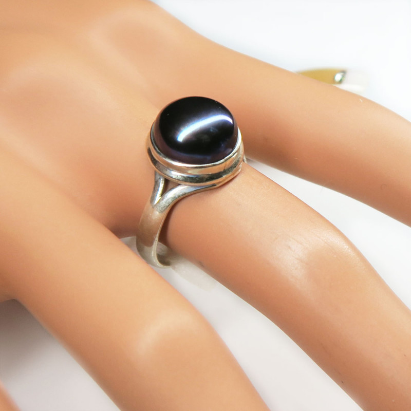 Комплект с натуральным жемчугом черного цвета, размер кольца 18, размер жемчуга 1 см., в серьгах английский замок, вес комплекта 10.17 гр., производство Индия.