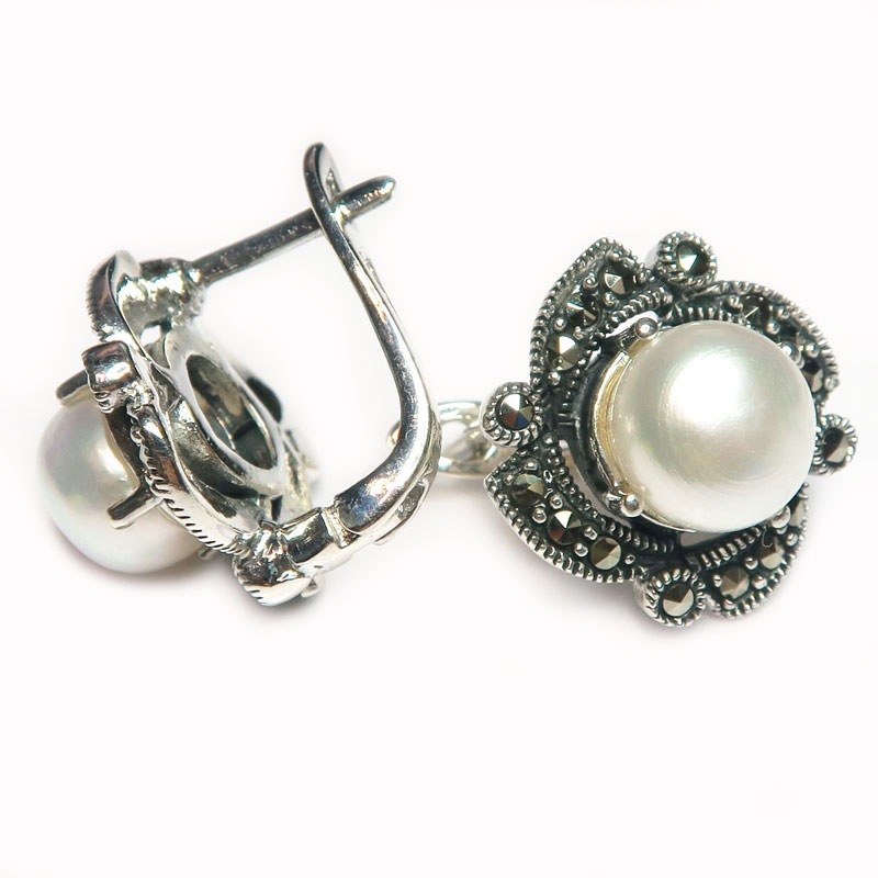 Комплект с жемчугом и марказитом 046-gk