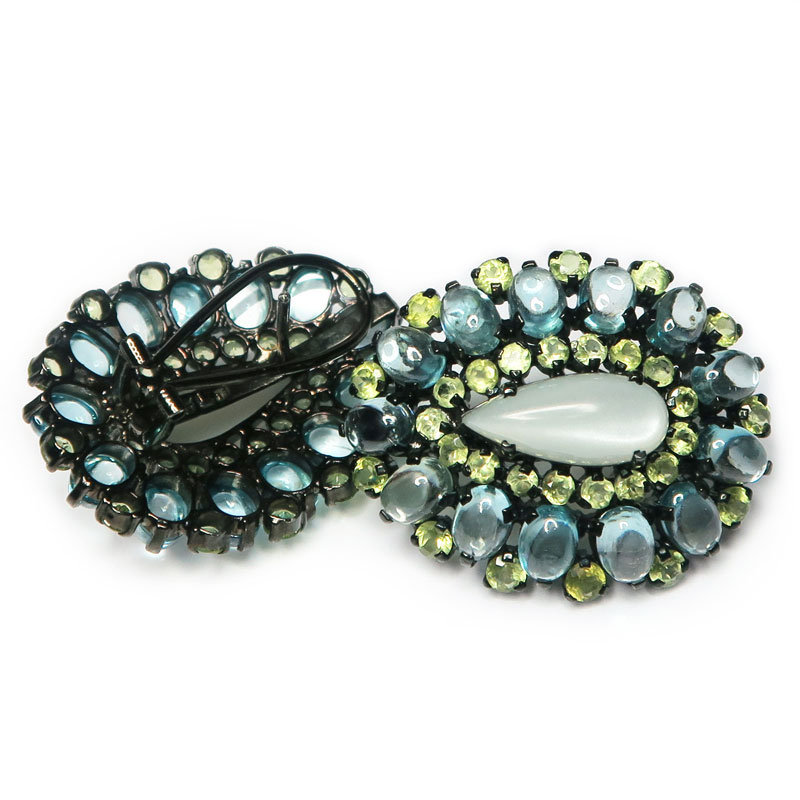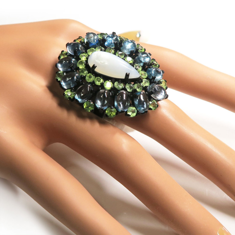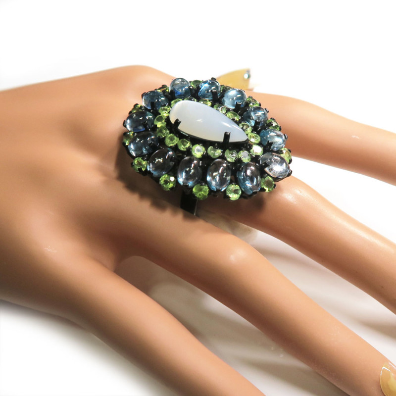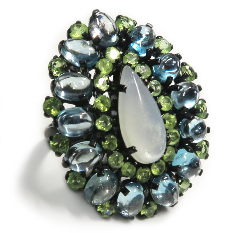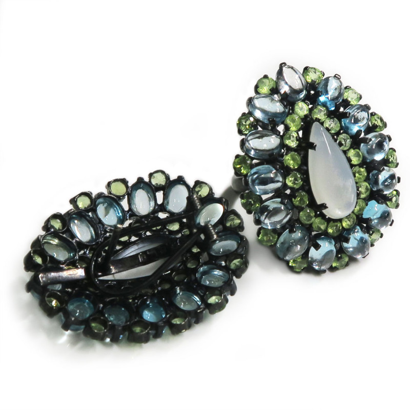 Улексит, Голубой топаз, Хризолит, Комплект с лунным камнем, голубым топазом, хризолитом