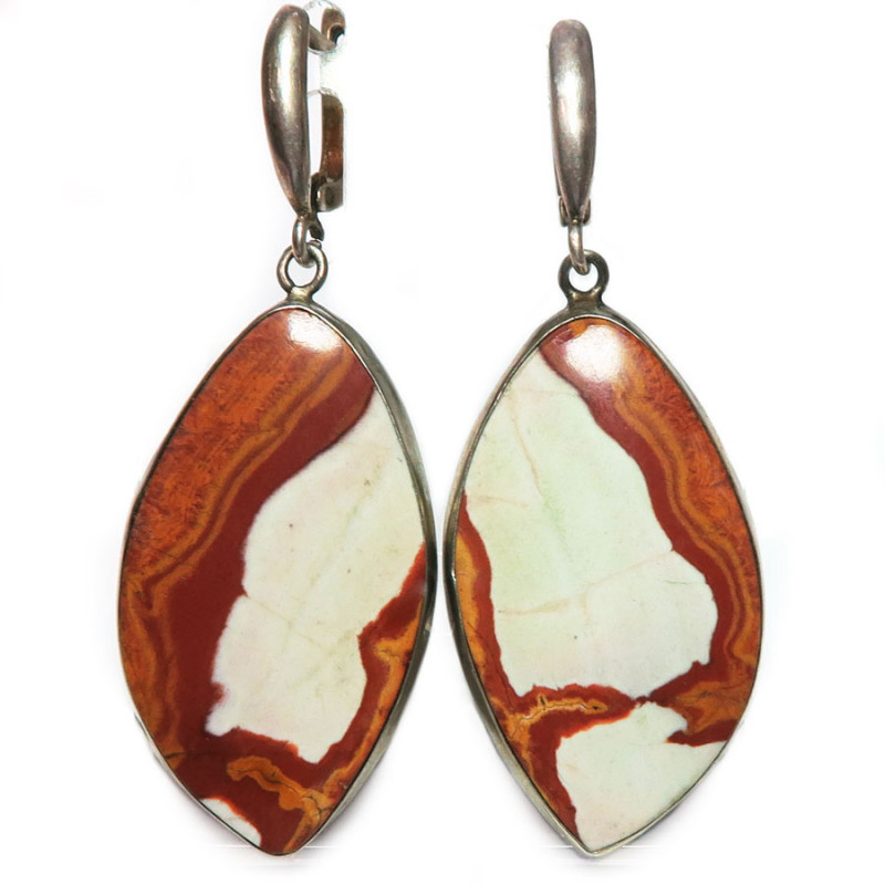 Комплект с яшмой серо-коричневого цвета, размер кольца 18.5, размер камня в кольце 2*4 см., размер камня в серьгах 3.5*2 см., металл нейзильбер, яшма уральская, производство Россия.
