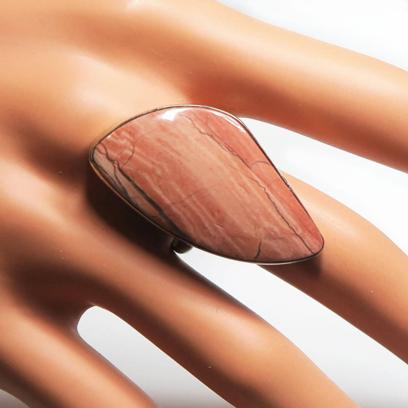 Комплект с яшмой розоватого цвета, размер кольца 19.5, размер камня в кольце 3.5*2 см., размер камня в серьгах 3.6*1.7 см., металл нейзильбер, размер можно немного увеличить, производство Россия.