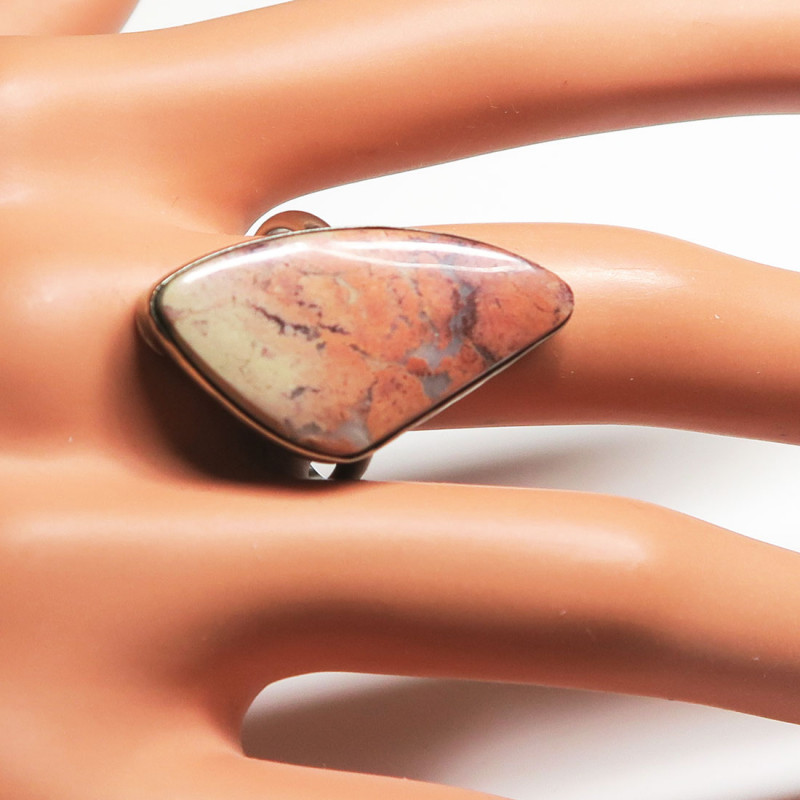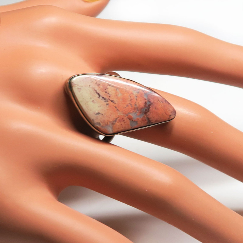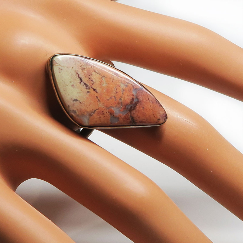 Комплект с яшмой , размер кольца 18.5, размер камней в серьгах 3*2 см., размер камня в кольце 3*1.5 см., размер в кольце можно не много отрегулировать в любую сторону, металл нейзильбер, производство Россия.
