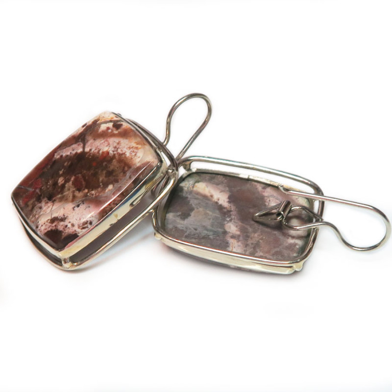 Комплект из уральской яшмы, размер кольца 18, размер камня в кольце 2.5*1.5 см., размер камня в серьгах 2.5*2 см., замок петля с защелкой, металл нейзильбер, производство Россия.