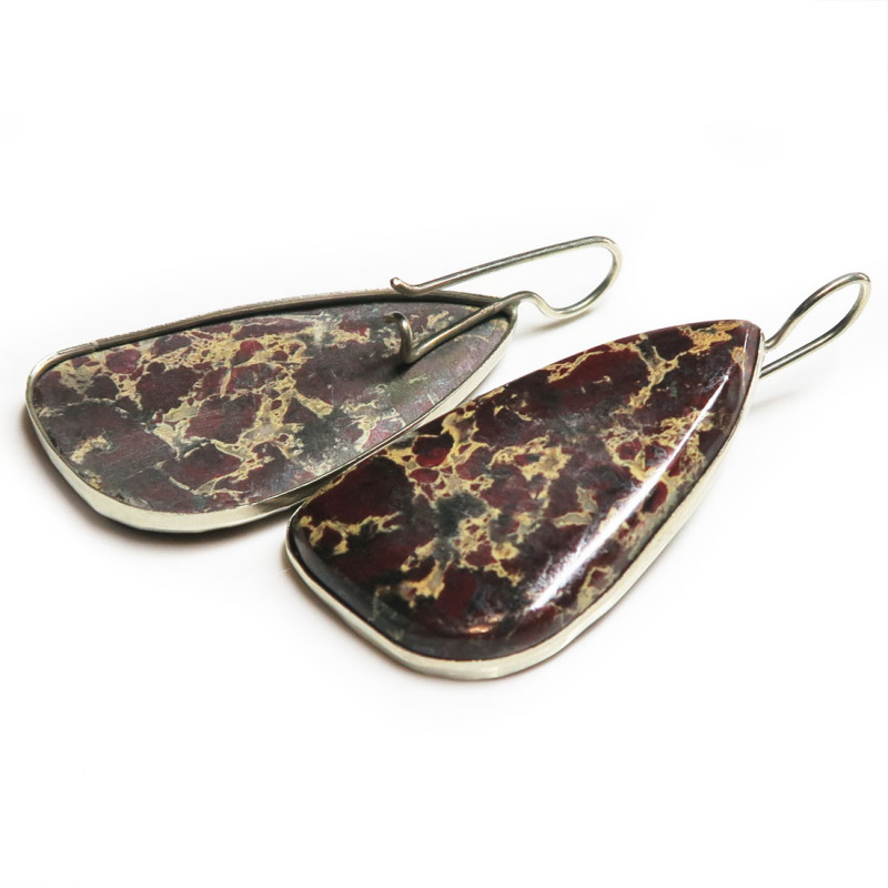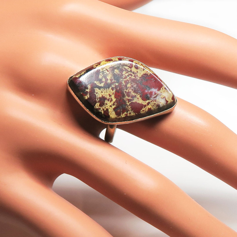 Комплект с яшмой бежевого-коричневого цвета, размер кольца 19, замок в серьгах петля с закреплением, размер камня в серьгах 2.3*4.2 см., размер камня в кольце 2.5 см., металл мельхиор, производство Россия. Размер кольца можно немного отрегулировать в любую сторону.