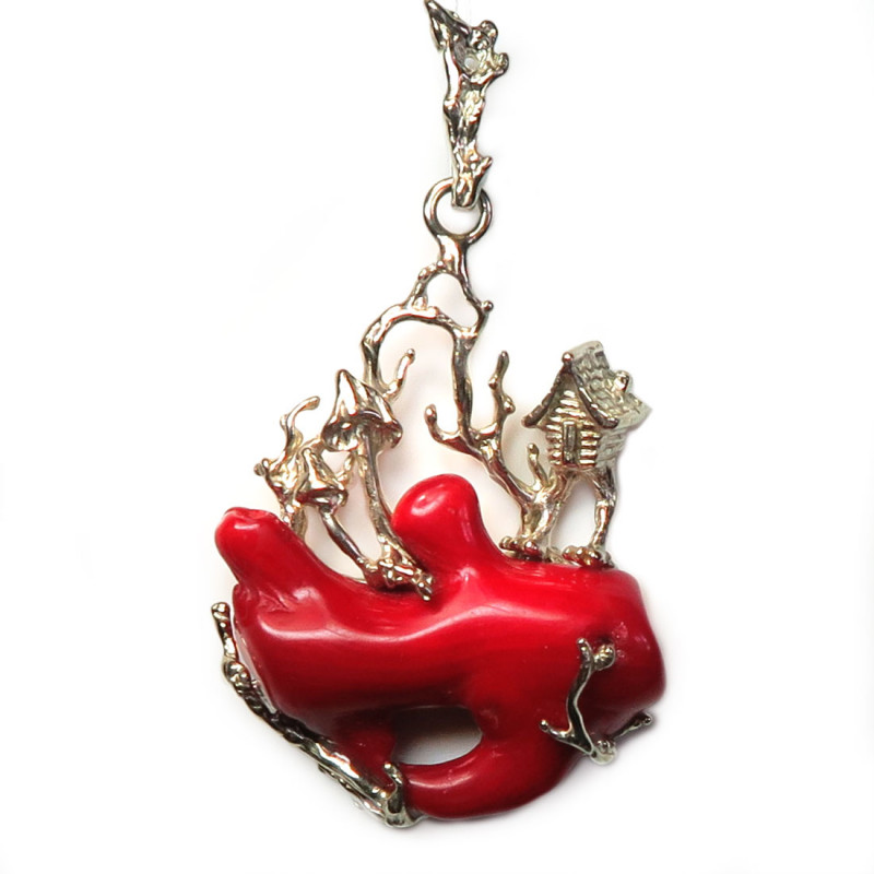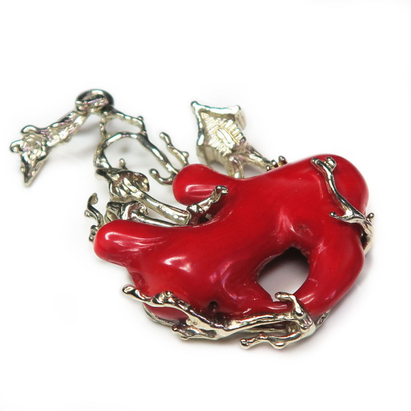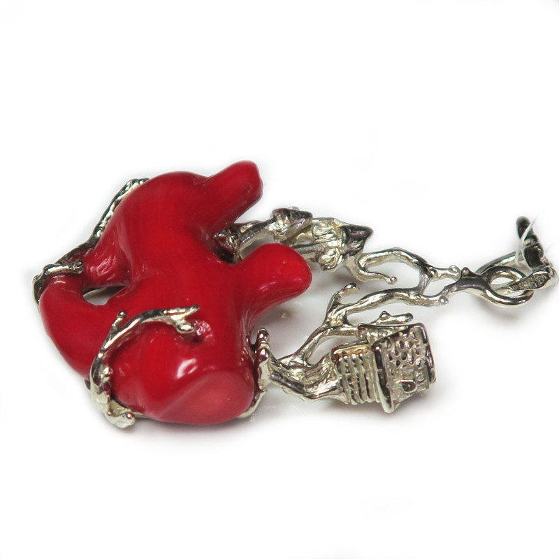 Оригинальный кулон с красным кораллом, размер кулона 4*3.5 см. без учета держателя кулона. Металл нейзильбер, производство Россия.