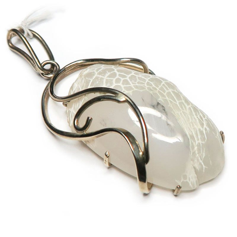 Кулон с натуральным кахолонгом, камень выпуклый с "корочкой", размер камня 4*2.2 см., металл нейзильбер, производство Россия.
