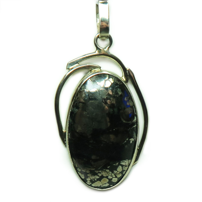 Кулон с пиритом в породе, размер кулона 4*2.8 см., без учета держателя кулона. Размер камня 3.2*1.9 см. Металл нейзильбер, производство Россия.
