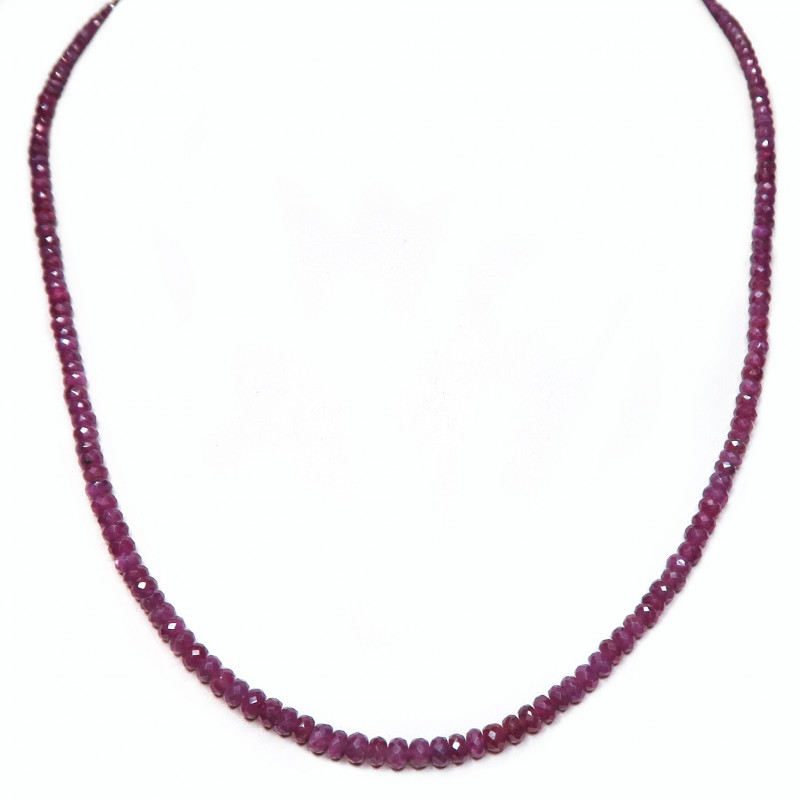 Бусы из рубина, камни с огранкой высокого качества, размер камня 0.4*0.2-0.25 см., длина бус 50.5 см., вес бус 16.72 гр. Замочек карабин серебряный, производство Индия.