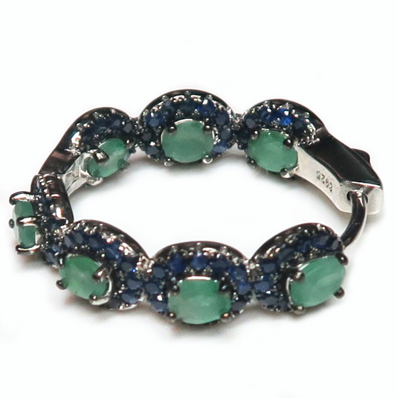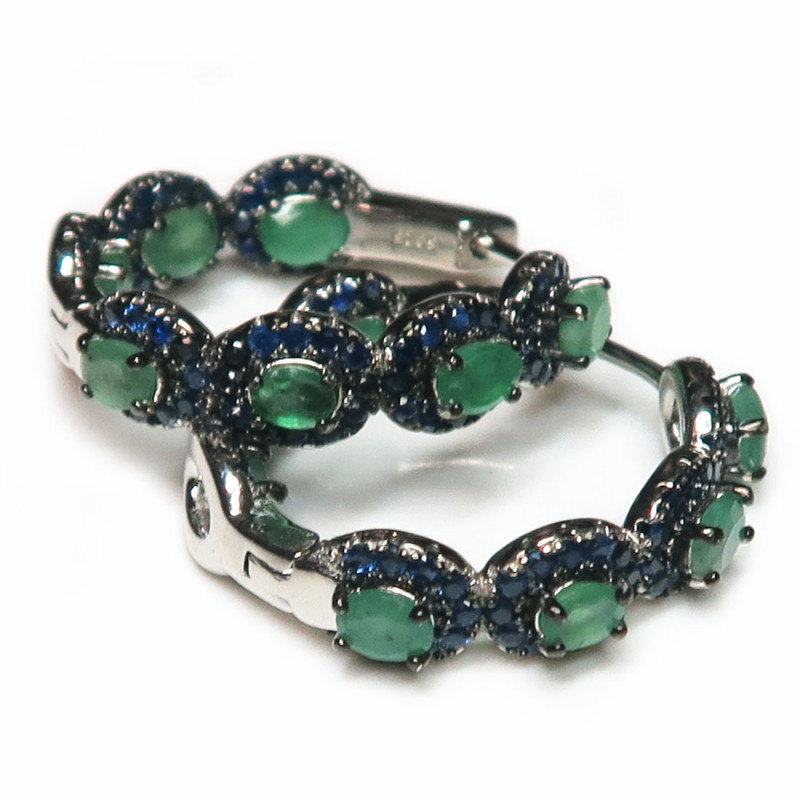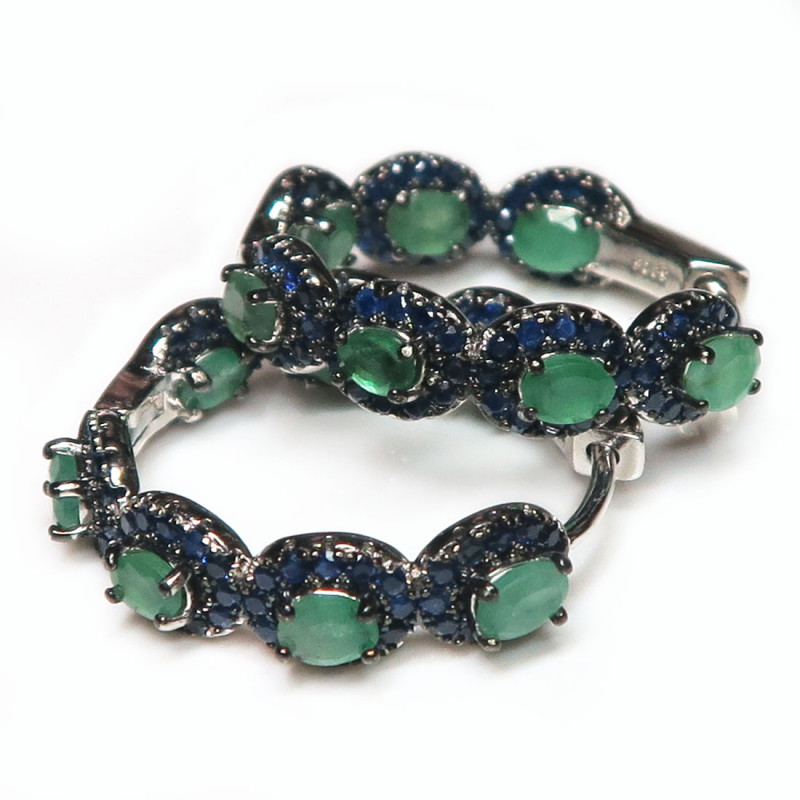 Серьги конго с бериллом и сапфиром, размер серьги 2.5 см., размер камня берилла 3*5 мм. Металл серебро с родиевым покрытием, хороший замок. Вес изделия 9.07 гр., производство Таиланд.
