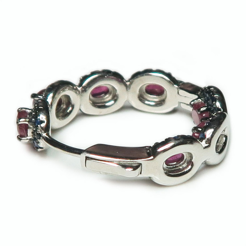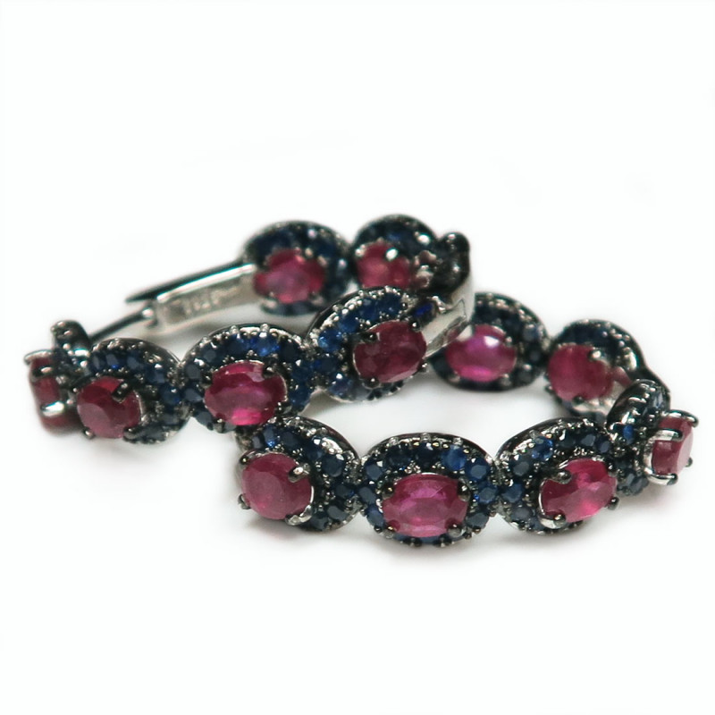 Серьги конго с рубином и сапфиром, размер серьги 2.5 см., размер камня рубина 3*5 мм. Металл серебро с родиевым покрытием, хороший замок. Вес изделия 9.02 гр., производство Таиланд.