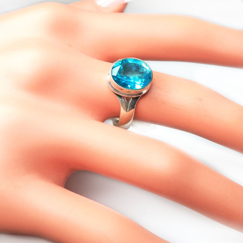 Комплект с топазом параиба красивого бирюзового цвета, камни с огранкой, размер кольца 18, размер камня 1.2*0.9 см., вес комплекта 8.94-9.1 гр., металл серебро, производство Индия.