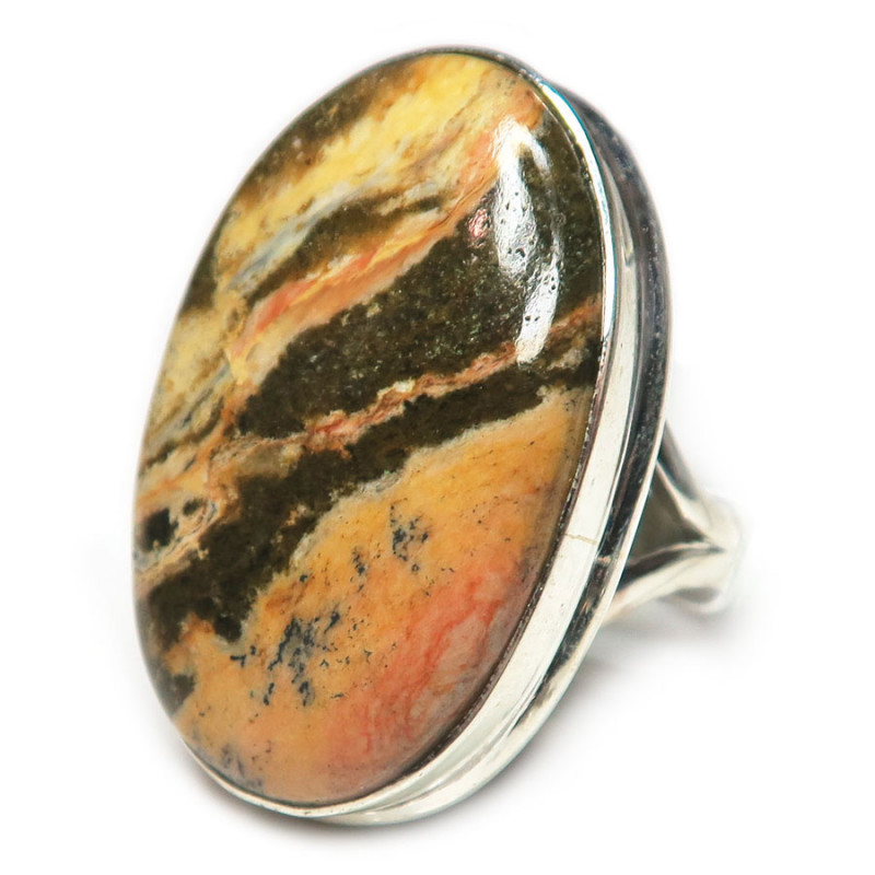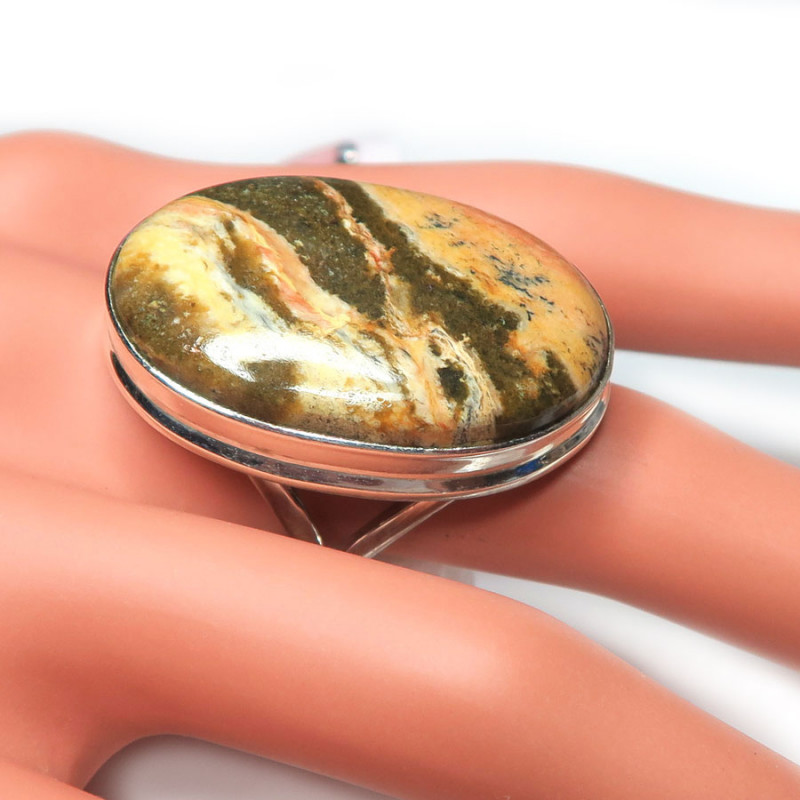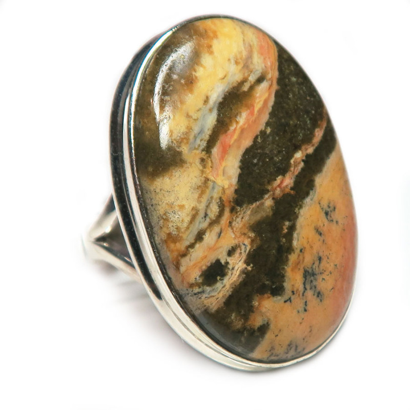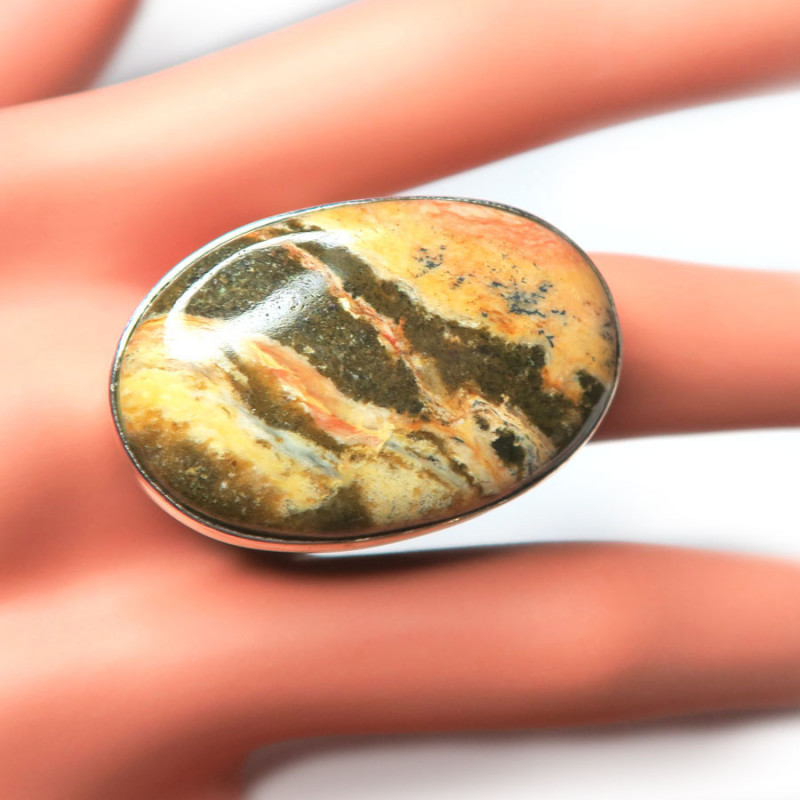 Кольцо с яшмой, размер кольца 19, размер камня в кольце 3.3*2.3 см., металл серебро, вес кольца 13.77 гр., производство Индия.