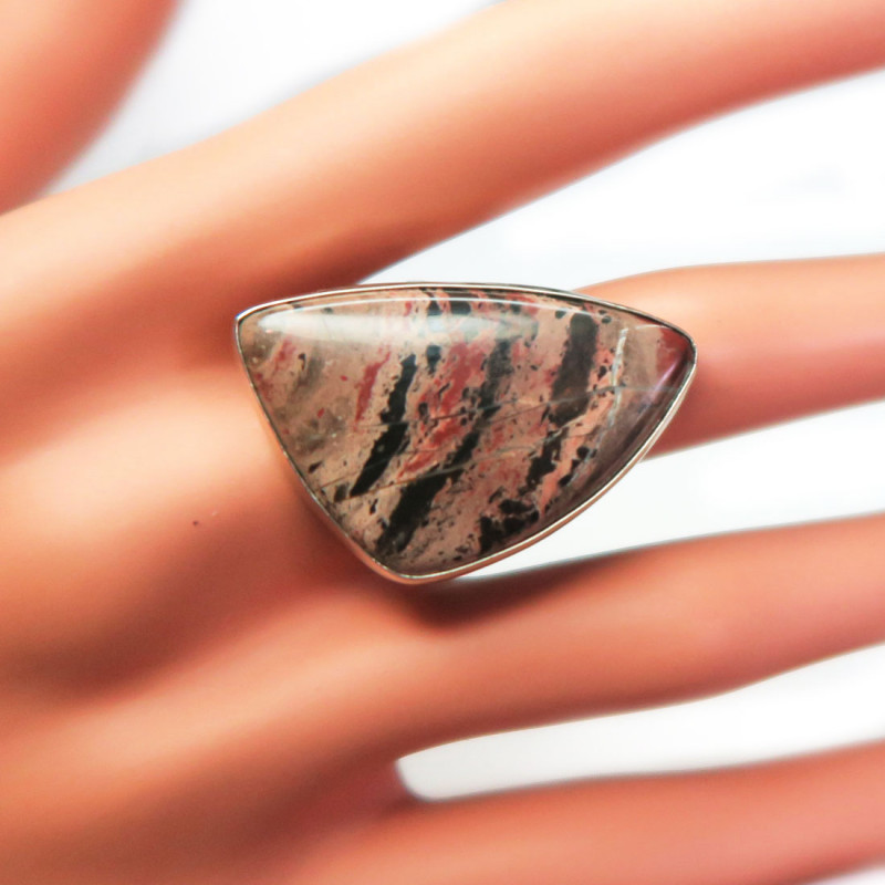 Кольцо с уральской яшмой, камень без огранки размер кольца 18, размер камня в кольце 3.5*2 см., металл нейзильбер, производство Россия.