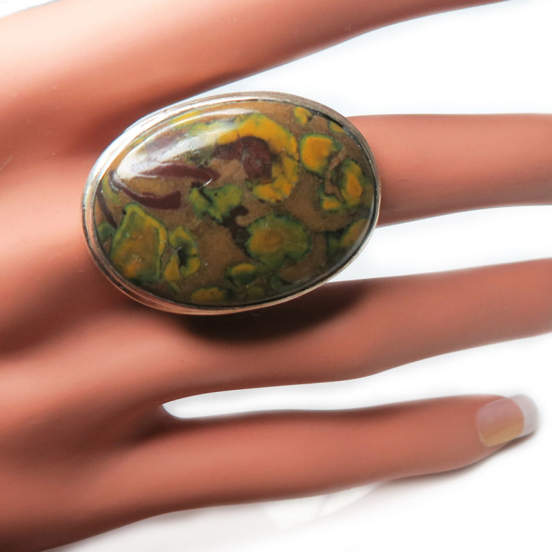 Кольцо с яшмой (роговик), размер кольца 18.5, размер камня в кольце 3.2*2.5 см., металл серебро, вес изделия 12.7 гр., производство Индия.