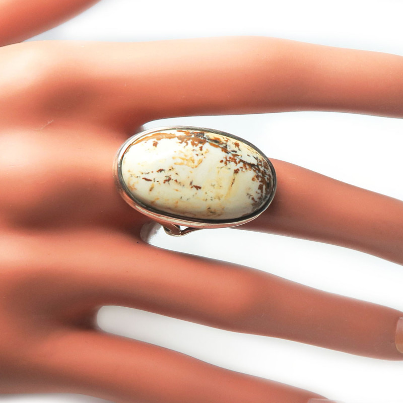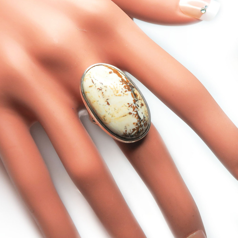 Кольцо с песочной яшмой, размер кольца 19, размер камня в кольце 2.7*1.6 см., металл серебро, вес изделия 9.5 гр., производство Индия.