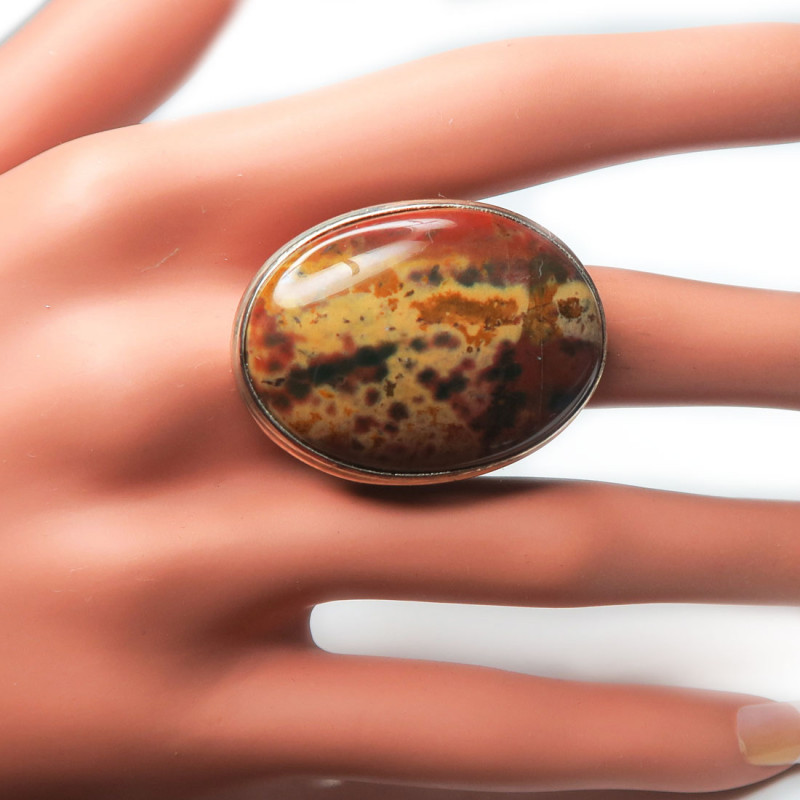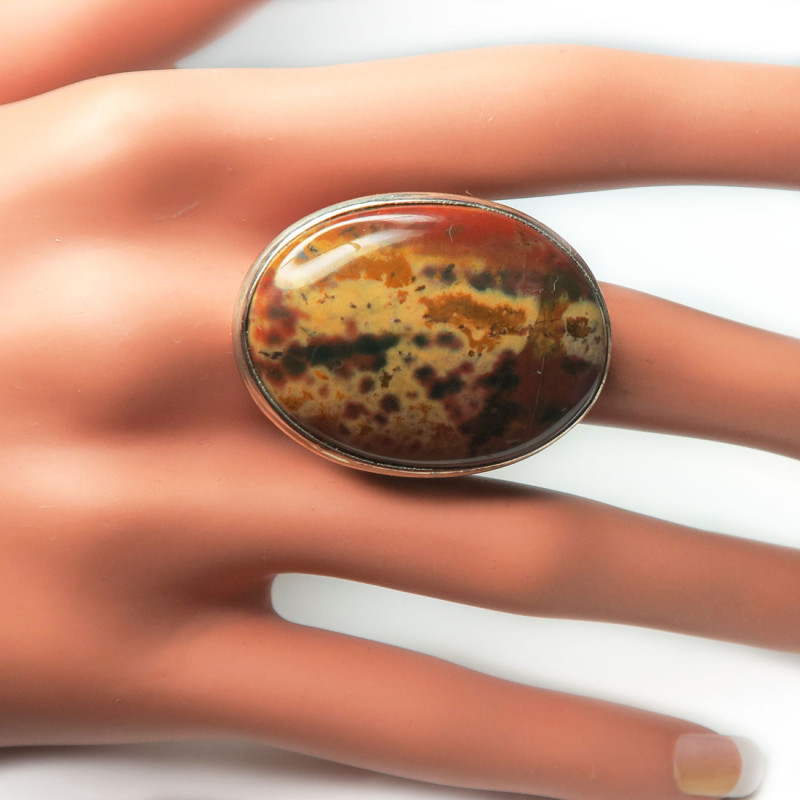 Крупное кольцо, желто-коричневой яшмой, размер кольца 19.5, размер камня 3.5*2.5 см., металл серебро, вес кольца 17.07 гр., производство Индия.