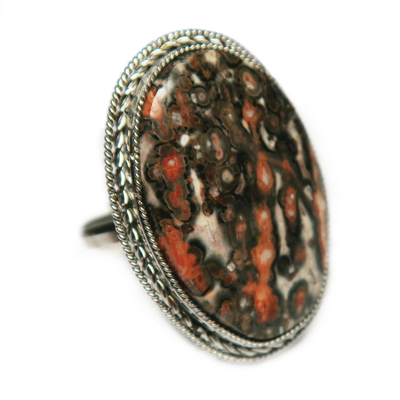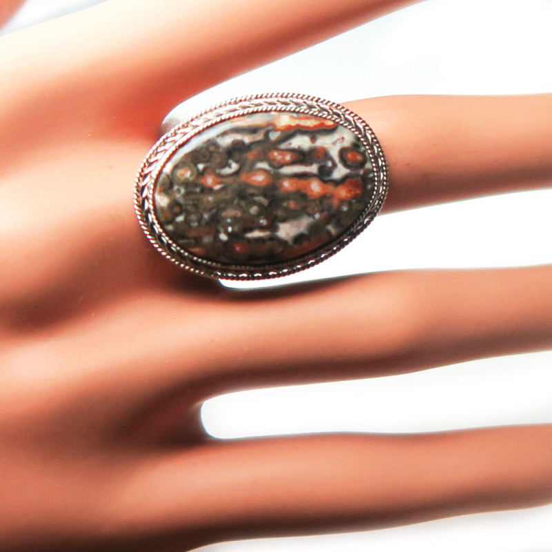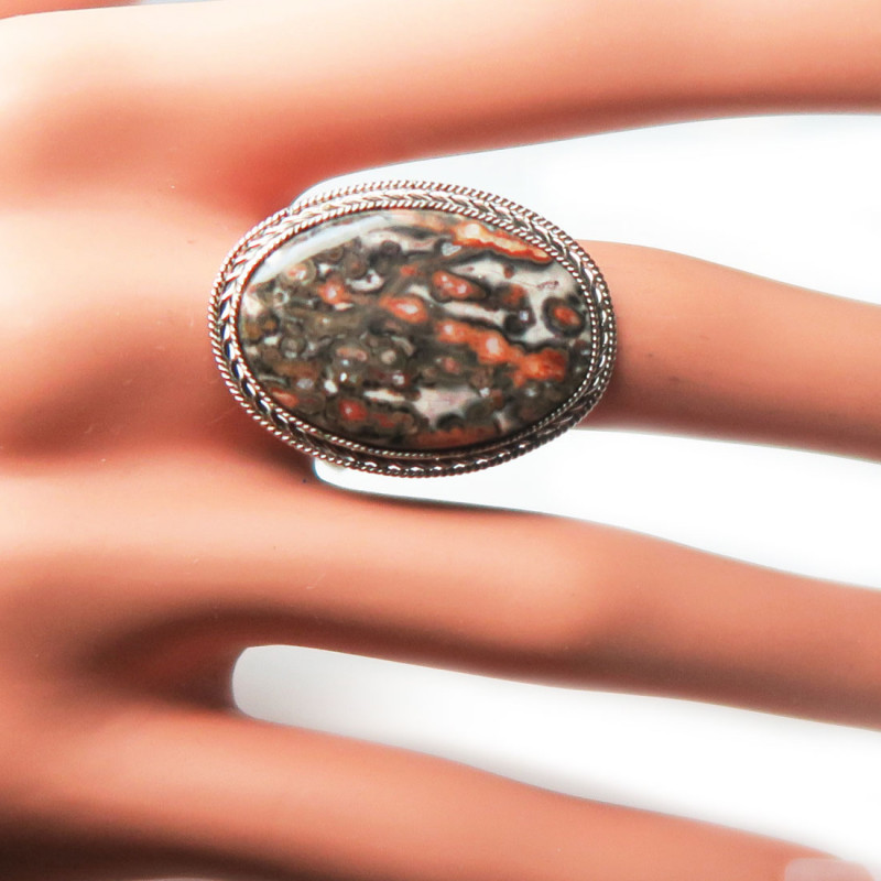 Кольцо с яшмой, размер кольца 19, размер камня в кольце 2.5*1.7 см., металл нейзильбер, производство Россия.