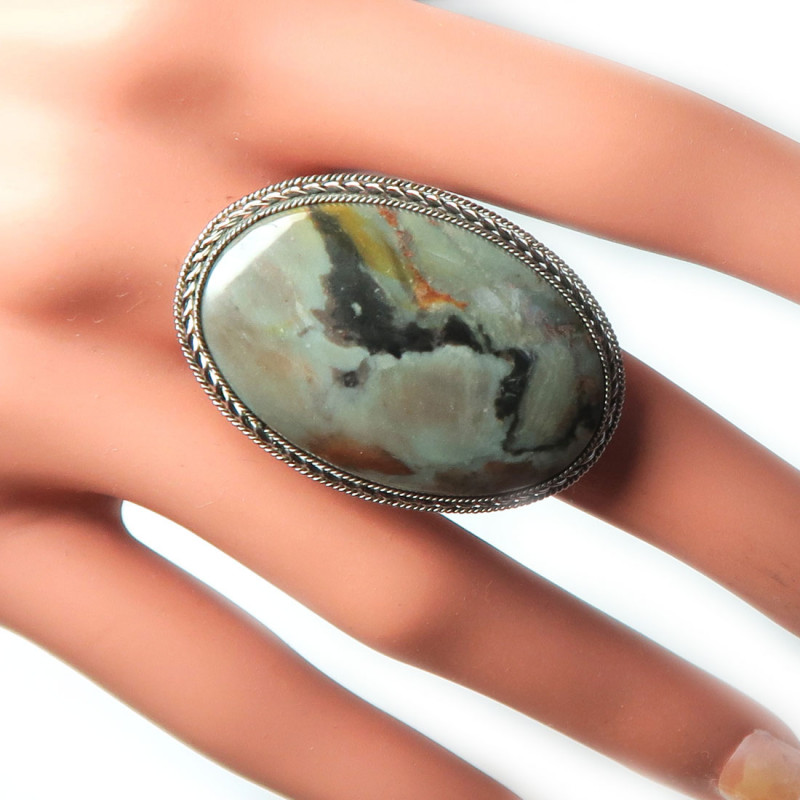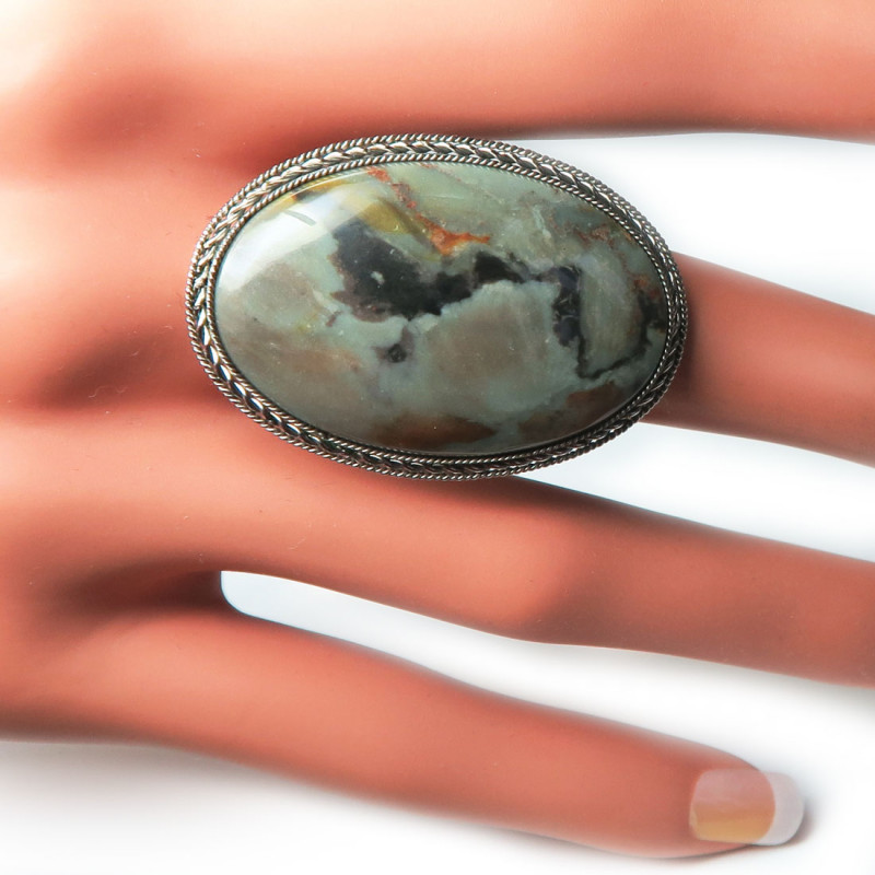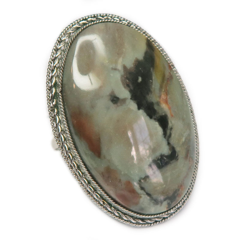 Кольцо с яшмой, размер кольца 20, размер камня в кольце 3.5*2.3 см., металл нейзильбер, производство Россия.