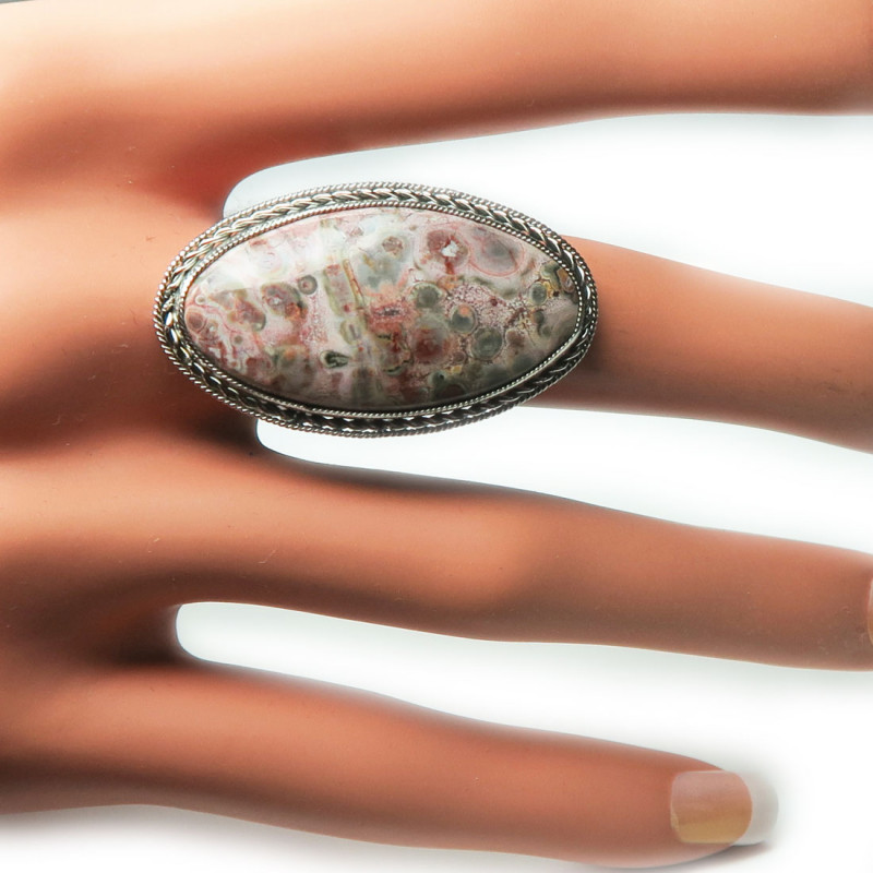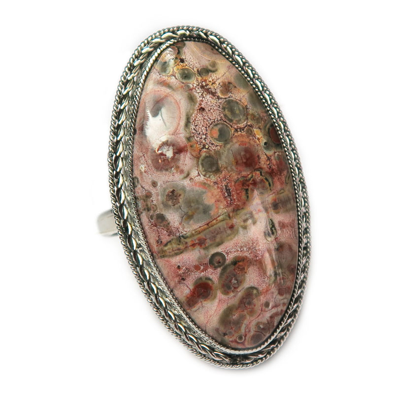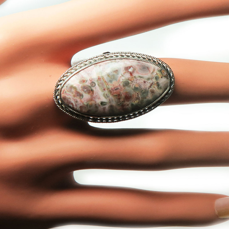Кольцо с яшмой, размер кольца 18.25, размер камня в кольце 3.3*1.7 см., металл нейзильбер, размер кольца можно немного увеличить или уменьшить, производство Россия.