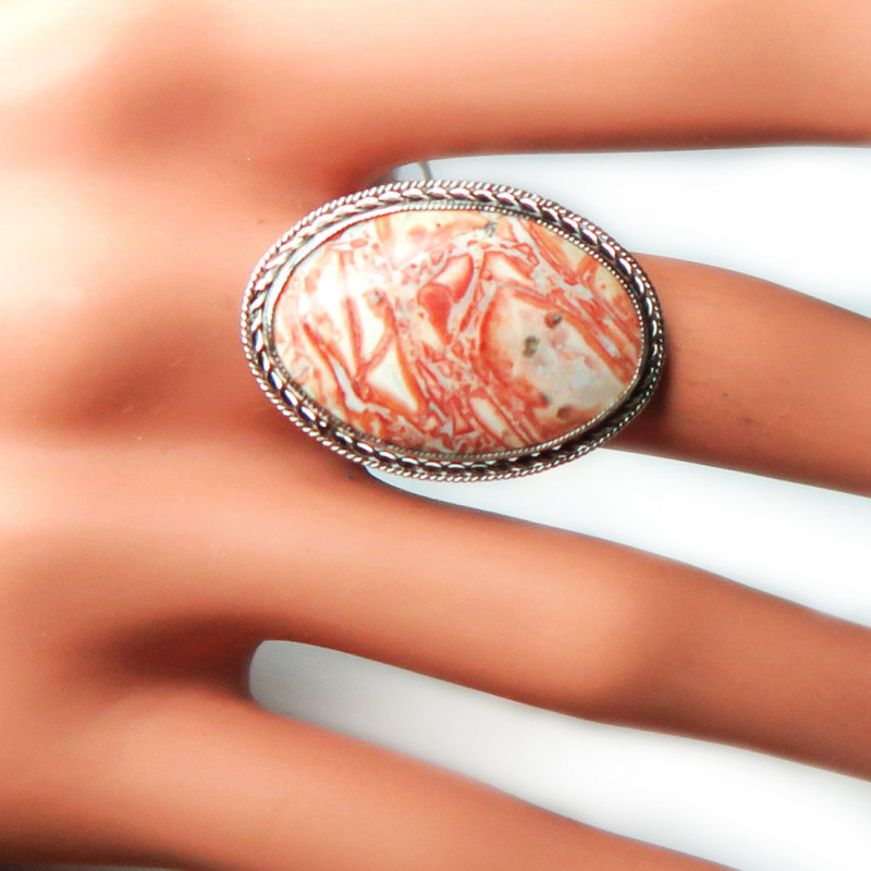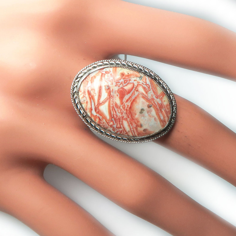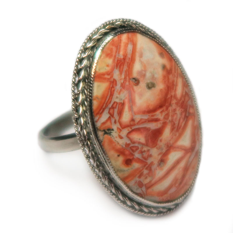 Кольцо с яшмой, размер кольца 18, размер камня в кольце 2.5*1.7 см., металл нейзильбер, размер кольца можно немного увеличить или уменьшить, производство Россия.