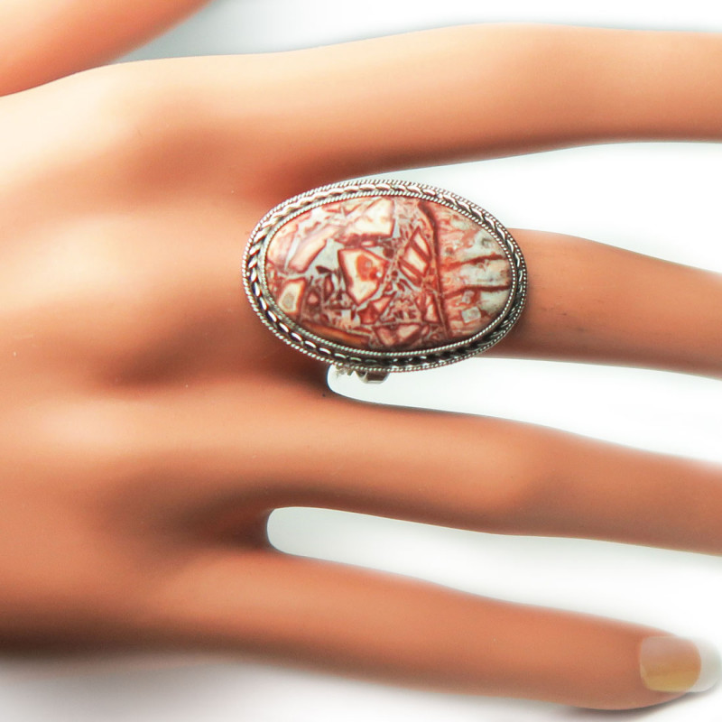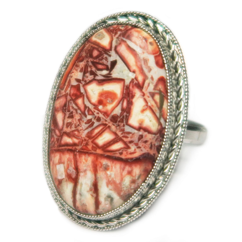 Кольцо с яшмой, размер кольца 19, размер камня в кольце 2.5*1.7 см., металл нейзильбер, размер кольца можно немного увеличить или уменьшить, производство Россия.