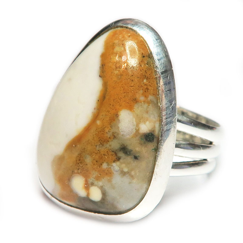 Кольцо с яшмой, размер кольца 18, размер камня в кольце 2.8*1.5 см., вес кольца 9 гр., металл серебро, производство Индия.