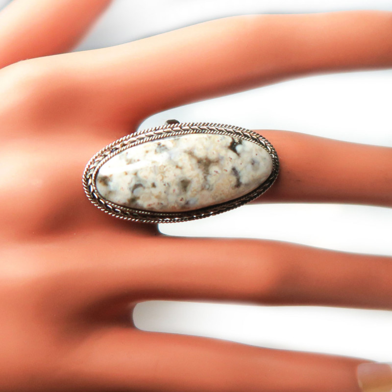 Кольцо с яшмой, размер кольца 18.5, размер камня в кольце 3.4*1.5 см., металл нейзильбер, размер кольца можно немного увеличить или уменьшить, производство Россия.